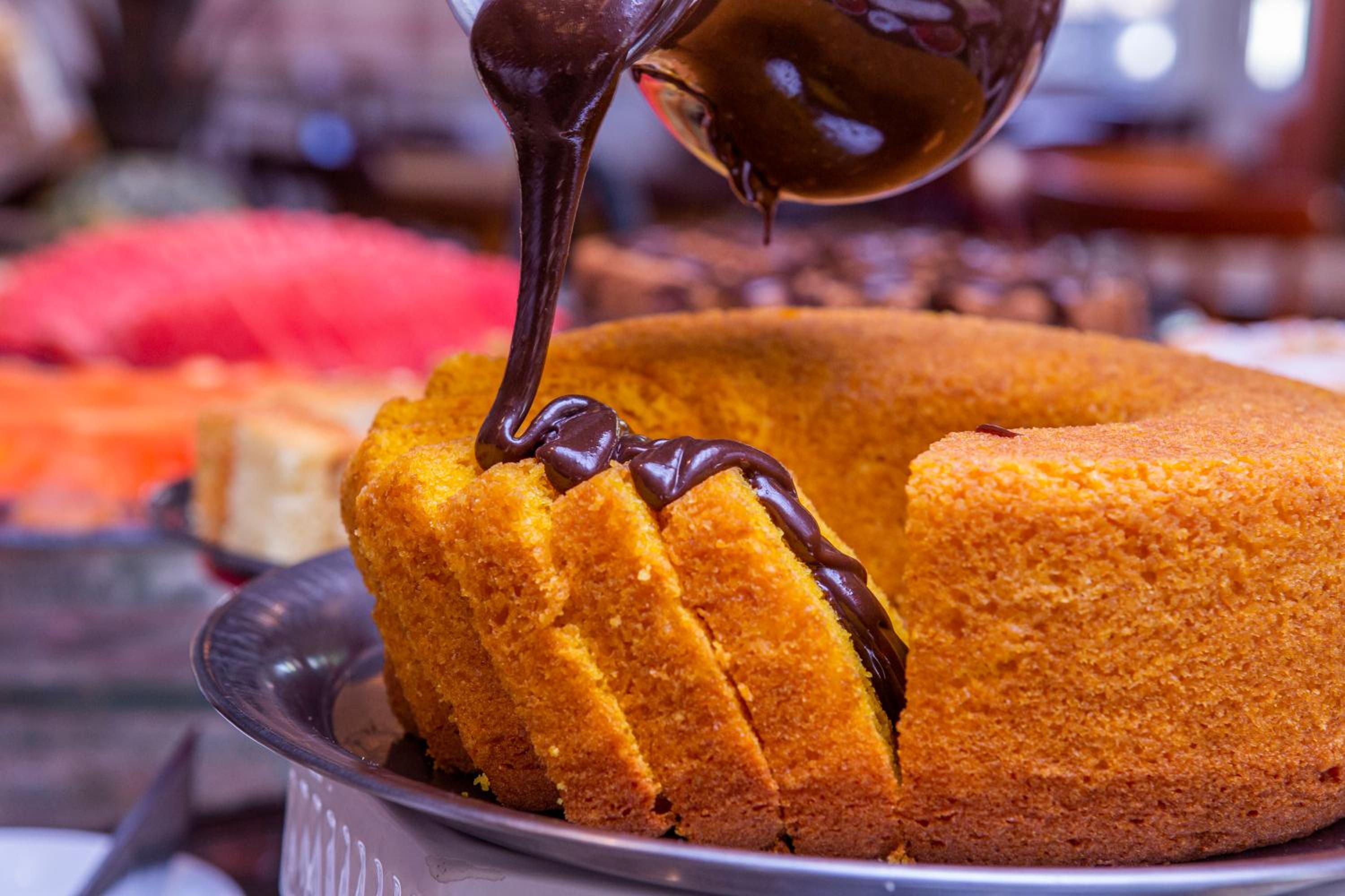 Area da piscina, café da manhã