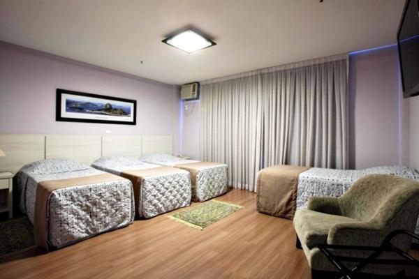 Quarto com bastante espaço para as malas, chuveiro bom, toalhas limpas todos os dias, limpeza do quarto no geral bom, cama confortável. Muito próximo para quem tem evento no ExpoRio CN.