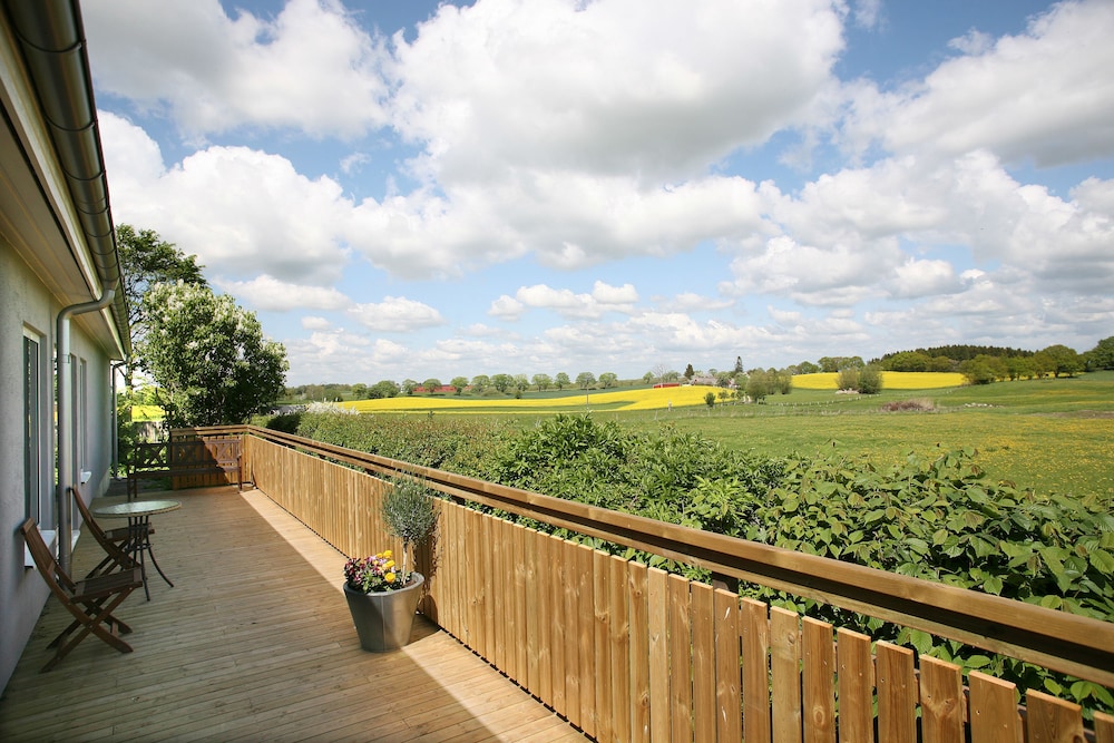 The hotel is small and is situated at the countryside outside Malmö. A calm place with a picturesque view over the corn fields. In the morning you can hear the rooster making wake-up-call for the hens. Unfortunately, the rooms are small, and in the summer very hot. The lack of air condition was irritat-ing. Internet was 15 Mbit down and 1 up. The breakfast was very good. By my opinion, the hotel was very expensive for the room standard. One thing I must underline: The restaurant! We were two per-sons and ordered two different dishes and both of us thought that they were fantastic. An outstanding chef is working here!