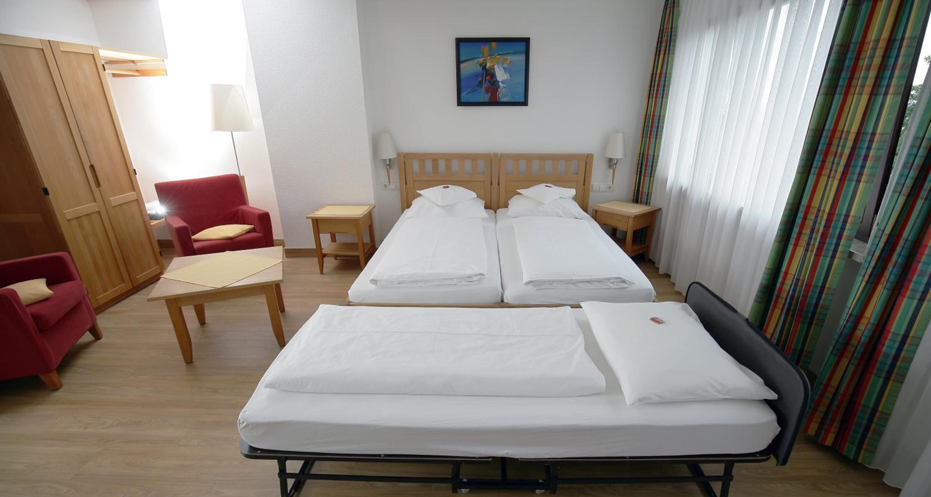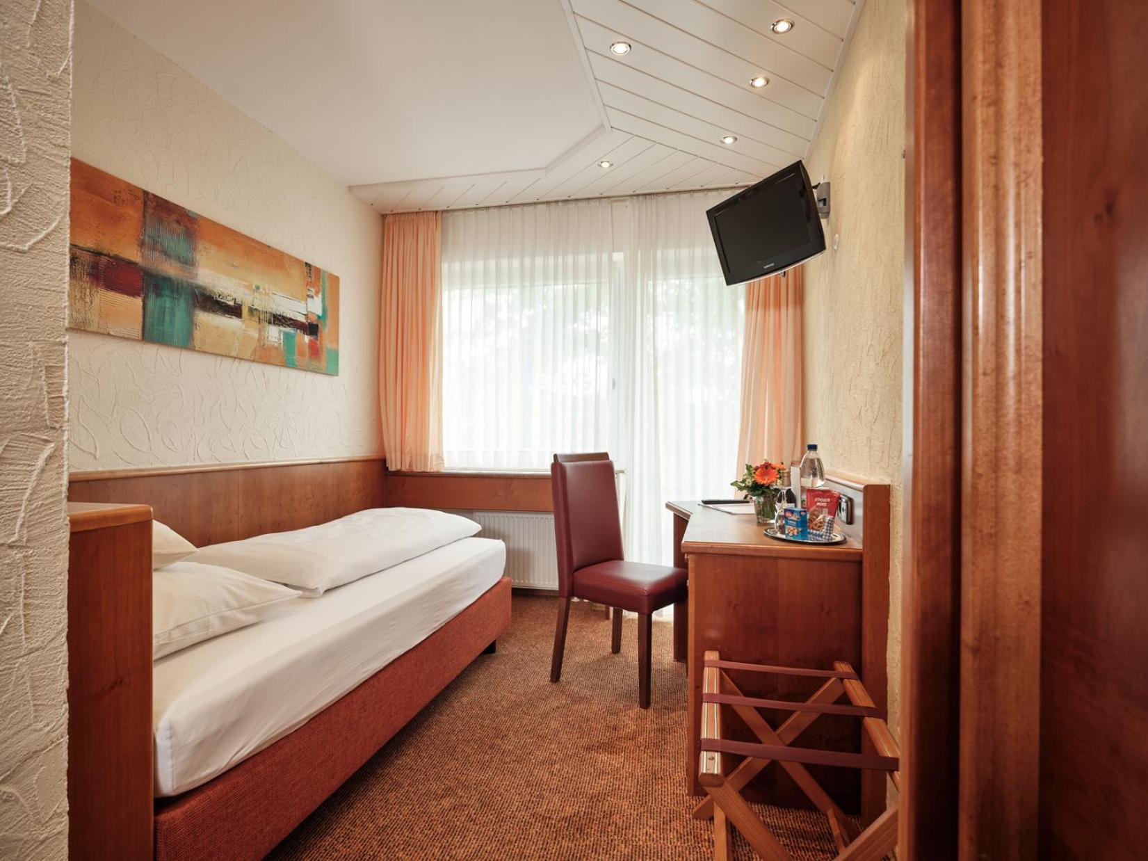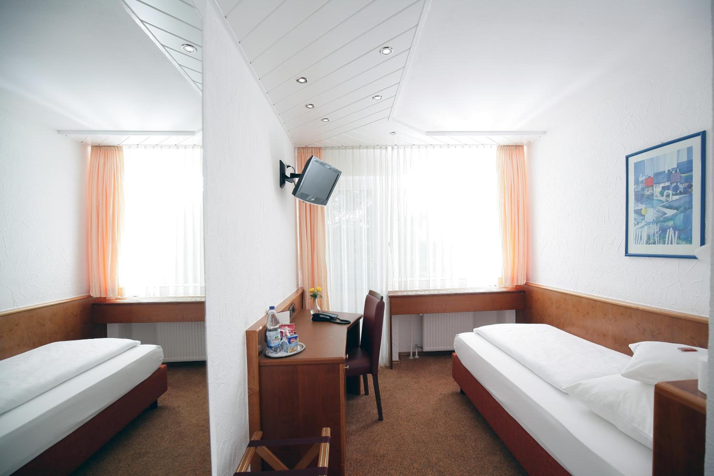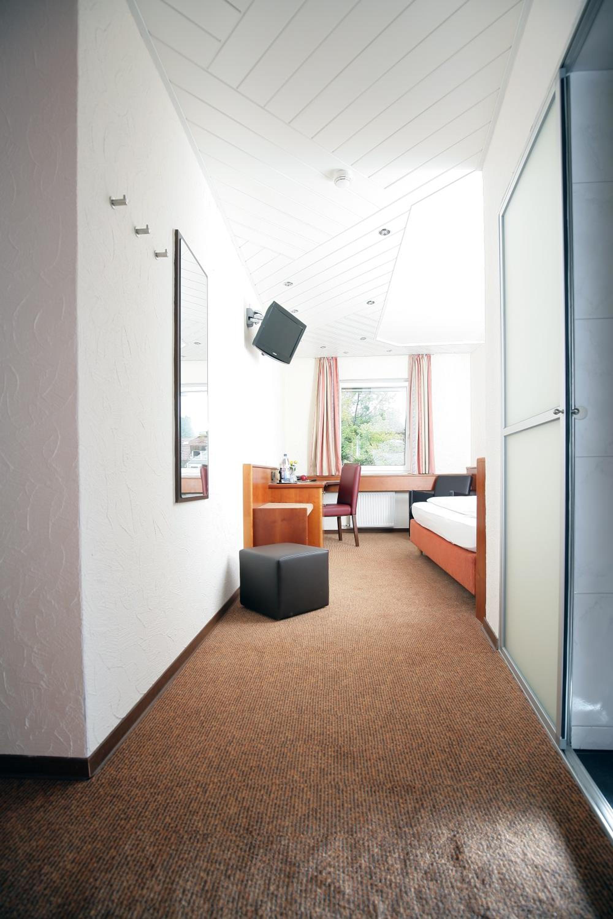 An excellent overnight stop on our way back from a ski holiday in the alps. Not far from the autobahn and with free parking. The half board rate was good value for money and saved us having to find food elsewhere. A nice menu choice of German fare was offered. If staying for more than a night I would choose a room to the back of the hotel for the views. All the staff seemed friendly.