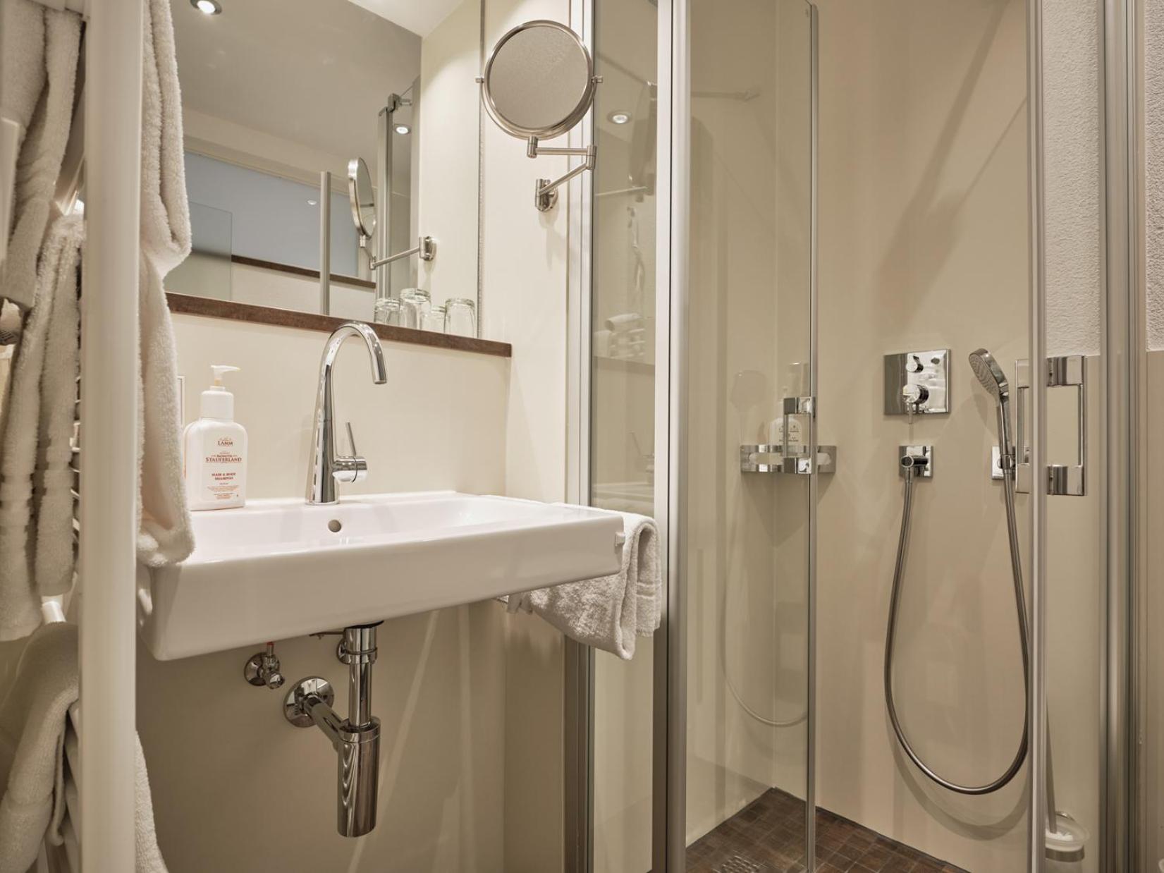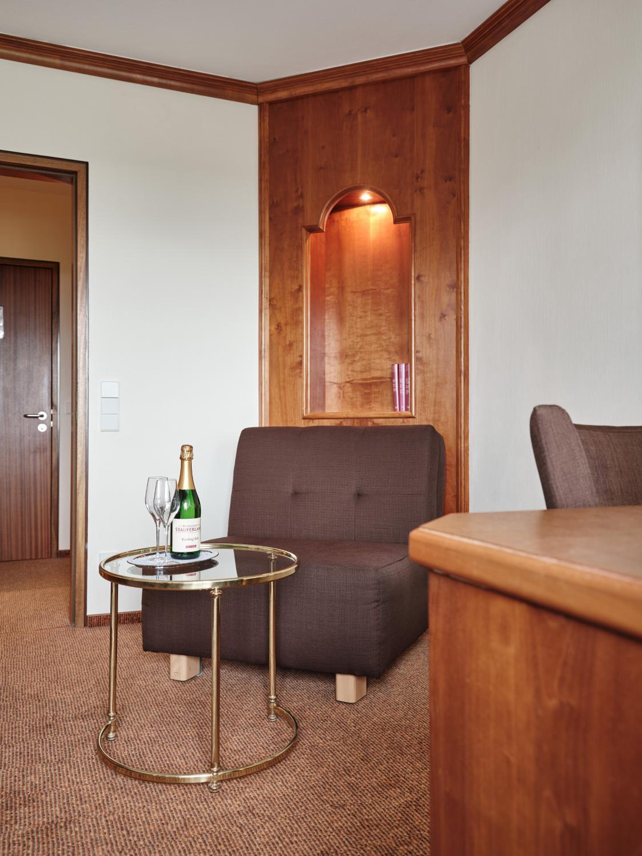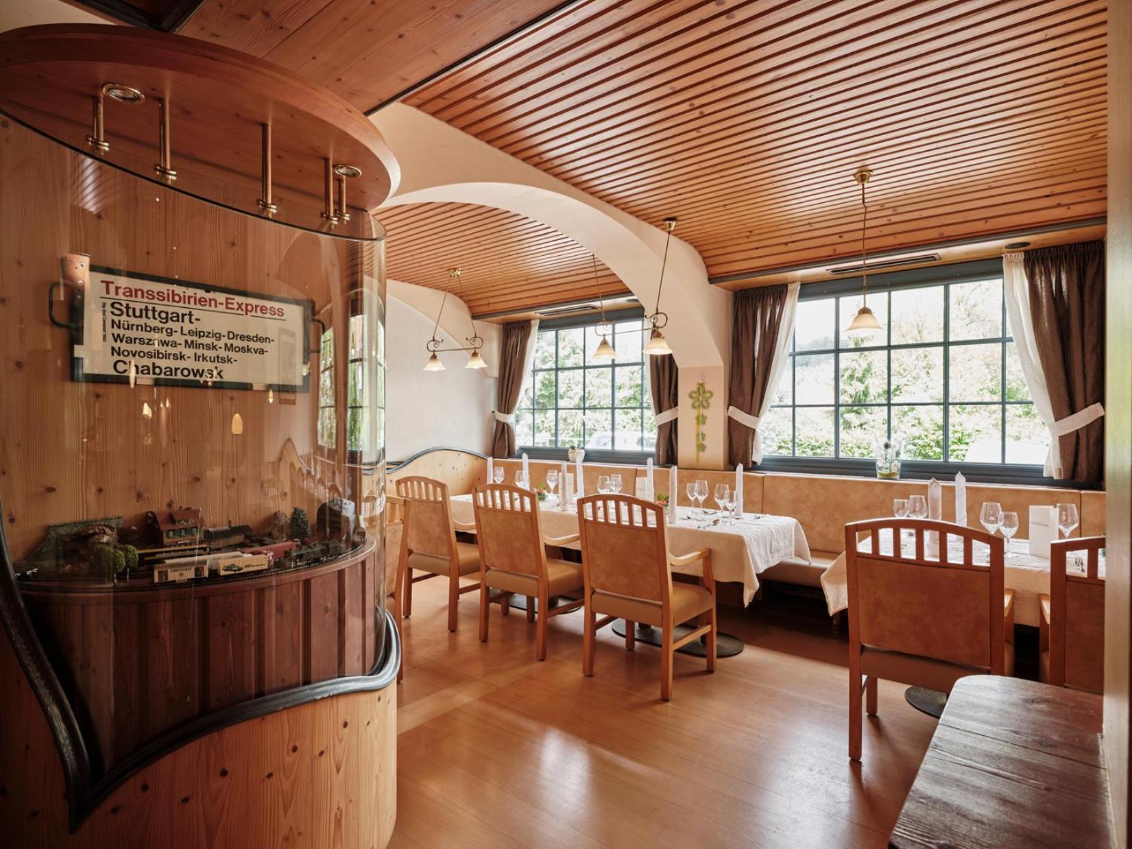 Welcome to Badhotel Restaurant Stauferland! Our property is conveniently located in a serene altitude, offering picturesque views of meadows and fruit trees. Panoramic Alps View: Experience breathtaking scenery overlooking Bad Boll from our hotel. Cultural Proximity: Just a short drive away from Stuttgart, immerse yourself in its museums and musicals. Wellness Retreat: Enjoy the mild climate of Bad Boll for year-round relaxation and activities, making it an ideal destination for wellness getaways and quick escapes. Ready to experience the tranquility and beauty of Badhotel Restaurant Stauferland? Book now for an unforgettable stay!