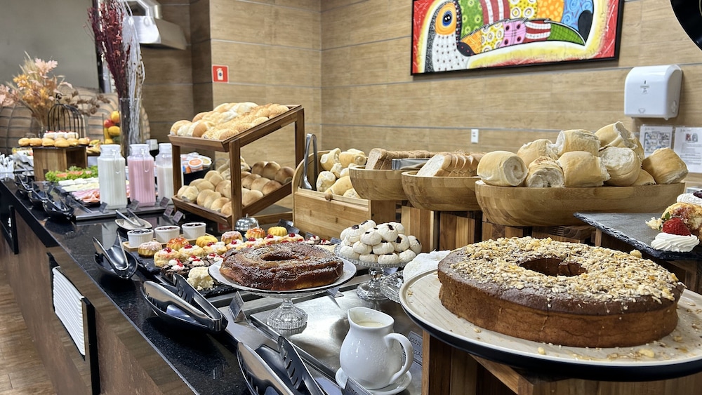 Eu acho que ainda falta melhorar um pouquinho o café da manhã tipo: pão francês mais corado não gosta de pão branco parece que está meio cruum bacon mais sequinho porque quando vamos servir ele está com muita gordura mas sequinho mas também tem muito ponto positivo quando pedimos um novinho frito da hora eles fazem fazem um omelete maravilhoso e o rapaz que atende no café da manhã é super simpático educado sempre tem um agrado pro hóspede na chegada um café quentinho às vezes tem um bolo e com relação ao conforto a cama é maravilhosa só as vezes que pegamos um travesseiro que não é tão legal