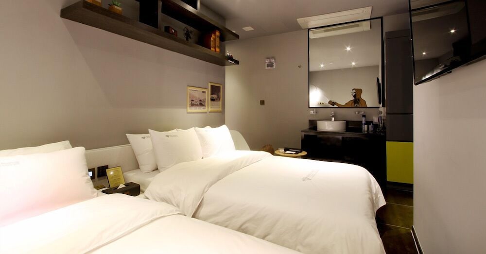 투 배드였는데 생각보다 구조가 답답하지 않고 실내 공기도 좋았어요. 작은구조인데도 욕조도 있고 깨끗해서 다시 이용의사 있습니다. 숙소 근처에 먹거리도 종류별로 많아요. 매우 만족했습니다.