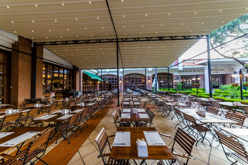 Unfortunately due to the weather most exterior dining was closed putting great strain on the main self service restaurant.The food was plentiful and varied but it was rather crowded and noisy. The staff were all very nice and our entertainment mighty muscled superhero Batman( sorry can't remember name but you can't miss him!) with his side kick the lovely Seda really made the holiday special.