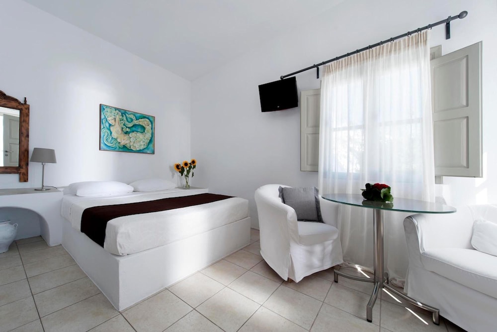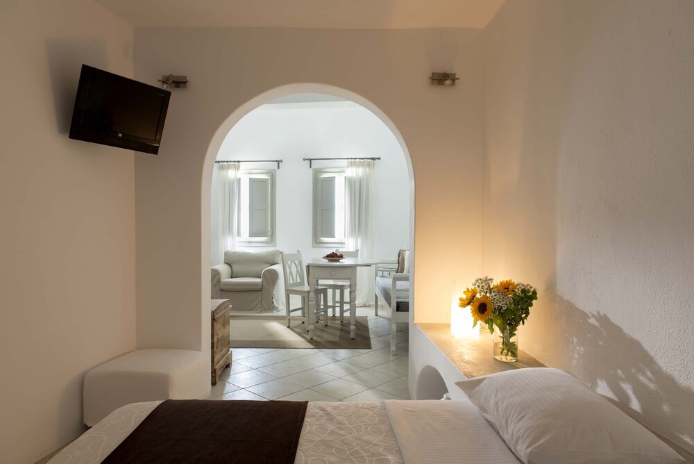 The location of my hotel room was very nice and I enjoy it for 2 nights. I was upgraded to another hotel with newer suites room the rest of my stay. It wasn't worth the upgrade. It was out below where I initially stayed. When I wanted my old room back within 2 hours I was told my room was no longer available. To my frustration and disappointment I told the lady to call the hotel manager at Gorgonas villa to get me another room from a nearby hotel since this upgrade room out of no where it not what I paid for. I paid for a beautiful view for 4 nights and less winds. Now I got more winds in front of my door to sit outside and enjoy whatever view I can see at the new location. My entire 3rd day was ruin from this ridiculous upgrade. Be warned about any upgrade the manager approach to you. Ask to actually see the upgrade location and room before you say yes. I will never make this mistake ever again. I felt trick into this worst deal of upgrade. I gave up my beautiful view in front of my room to new building in the middle of no where way down below. I got to see dry deserts of dirt, rocks and dry up grapes bushes and a donkey when I walk around my upgrade room. Thanks for the frustration day Spryros aka manager at Gorgonas villa. I put up with the bad smell and puddle of water waiting for me every morning. The workers are friendly and helpful. Lesson learned from this trip.