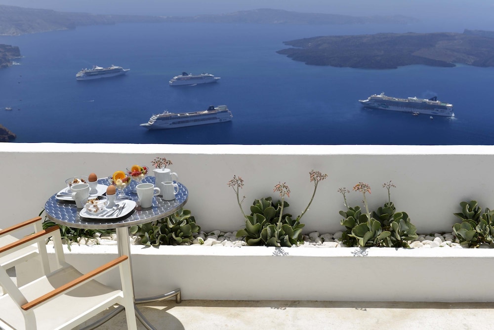The view of the caldera is amazing and the staff are all superior for their service. Being able to have breakfast brought to your personal table with a view of the caldera was a highlight of our trip. Don't try to find the hotel yourselves. Call the front desk and have the bell hops guide you to the office and carry your bags. The only negatives were the air conditioner had some trouble cooling the room to our liking and the shower sprayer often fell off the wall. Overall it was an excellent experience and I do recommend this hotel.