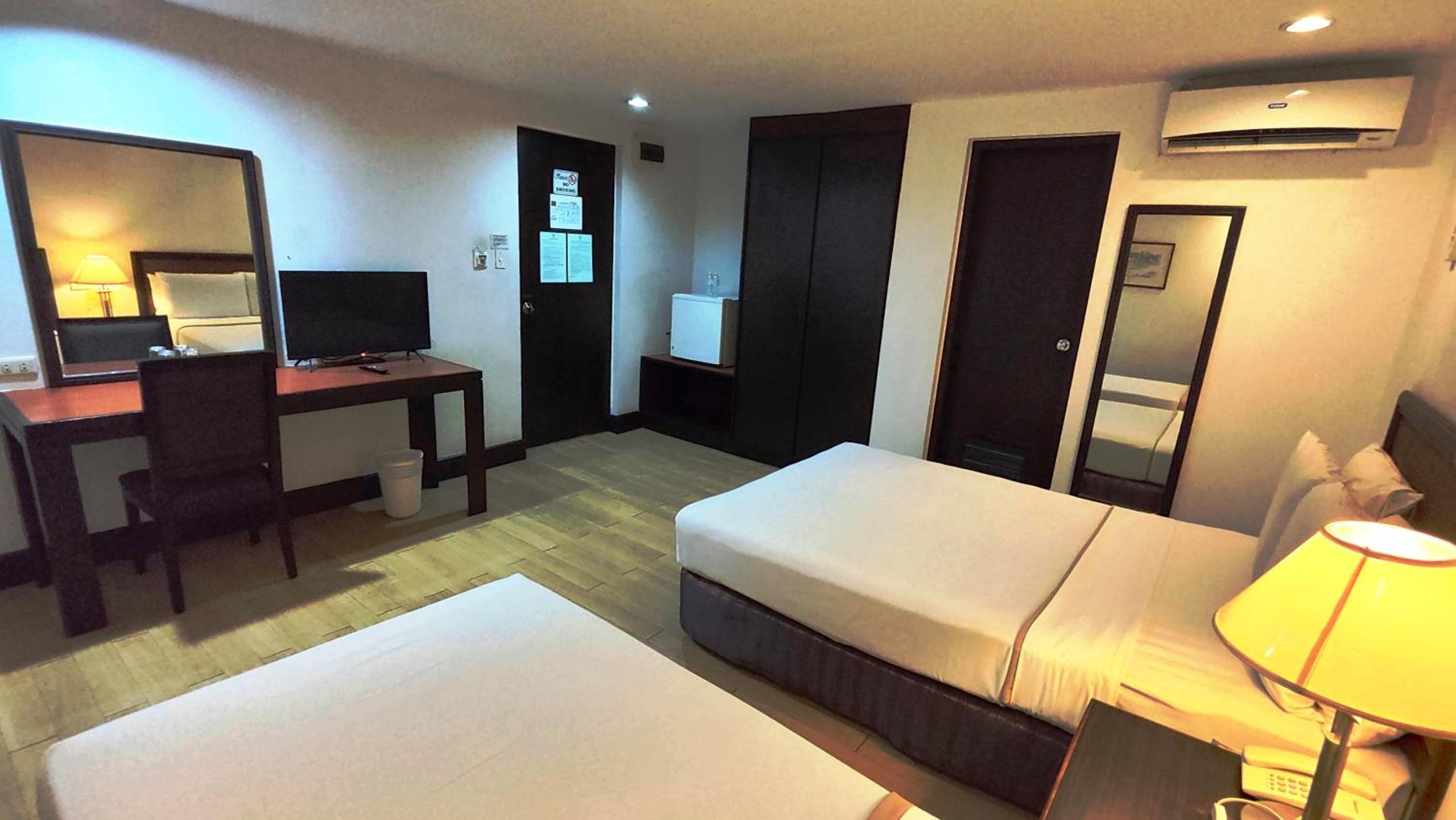 The room was outdated and humid. The AC was very weak. The fridge was broken.