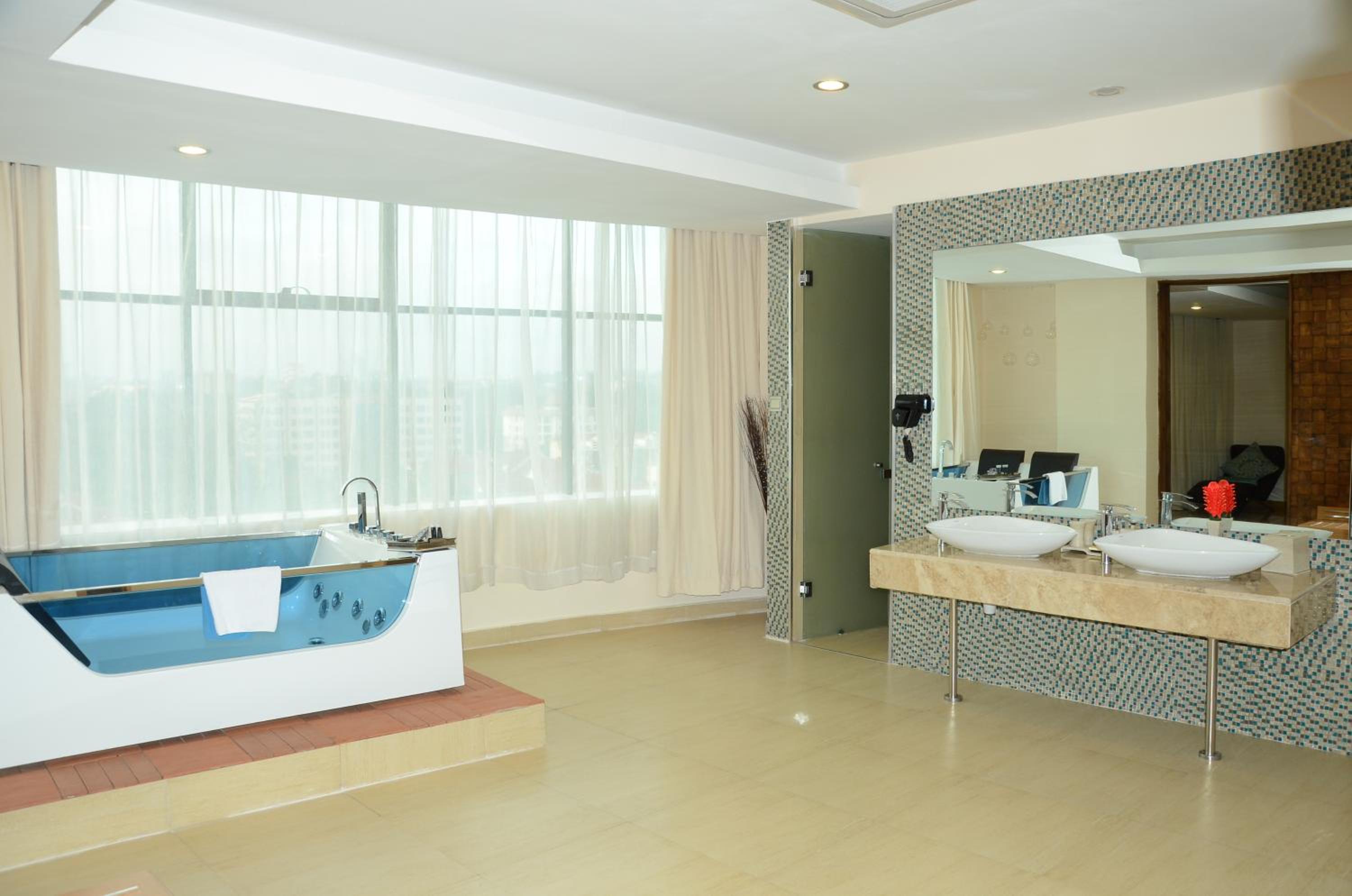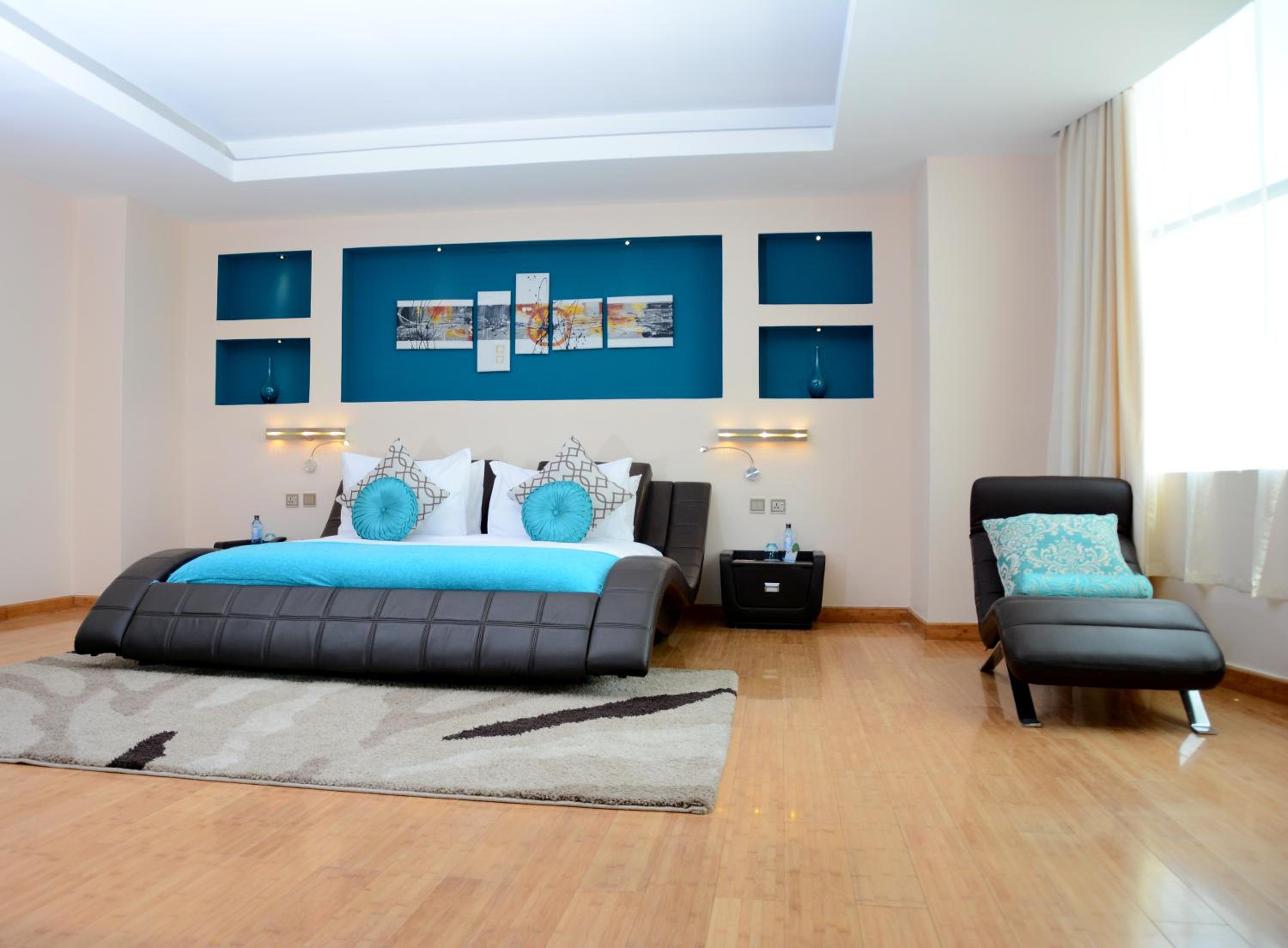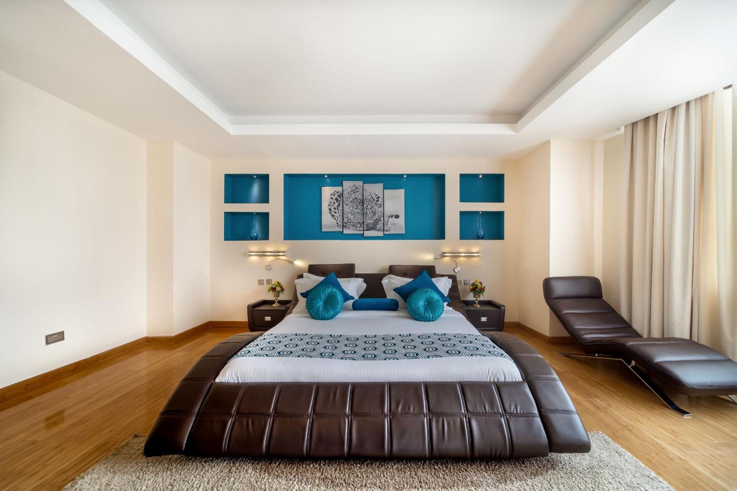PrideInn Azure Hotel Nairobi Westlands offers elegantly decorated rooms with modern amenities, including a fireplace, flat-screen TV, and minibar. Relax in style and comfort during your stay.