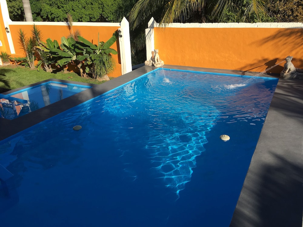 Good location between Mérida and Tren Maya train station. This restored colonial house has a great pool, in a tranquil setting and is surrounded by fruit trees that help make breakfast delicious.