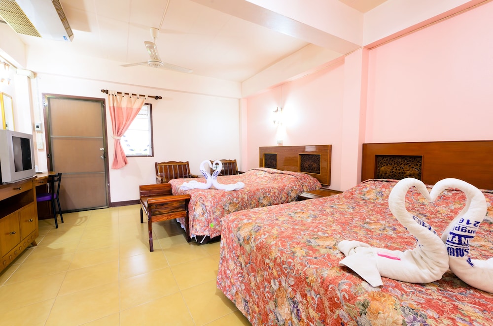 เราเดินทางกลับไปเยี่ยมบ้าน เลยหาโรงแรมพักค้างคืน จองผ่านเว็บไซด์เพื่อความสะดวก แต่ราคาที่จอง 535 บาท (ไม่รวมภาษี) ได้ห้องพัดลมอาจเพราะเราอ่านไม่ละเอียด เรารับได้ แต่ราคาหน้าโรงแรมแจ้งว่าห้องพัดลม 390 บาท แอร์ 690 บาท ทำให้เสียความรู้สึก ทีวีดูได้เป็นบางช่อง ช่องท้องถิ่น คือ 33 และ 35 ไม่มีสัญญาณ ช่องที่ดูได้คือพวกขายของ แจ้งพนักงานแล้วก็ทำอะไรไม่ได้ ที่นอนดี