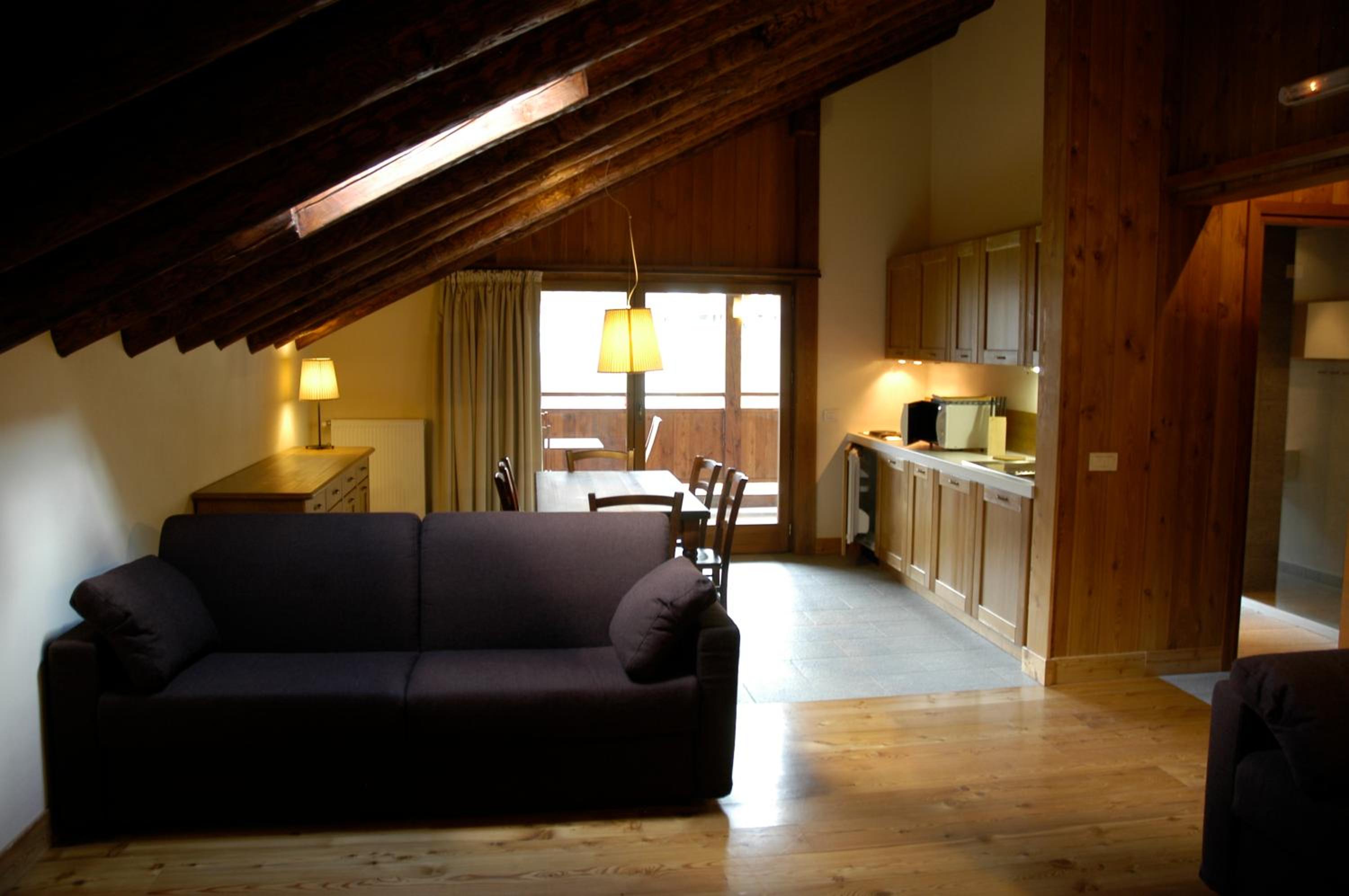 Mi è piaciuto l'appartamento tipo chalet, moderno, ma dall'aspetto rustico, vista sulle montagne da ben 2 ampie finestre.. piccola ma piacevole SPA all'interno della struttura..