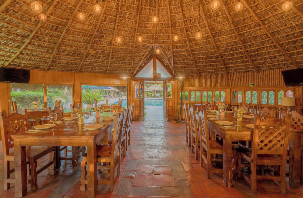 Segun tiene aguas termales y el agua no esta caliente tiene varias albercas sobre todo una techada y solo habilitan una los precios del restaurante son excesivos y para llegar esta horrible