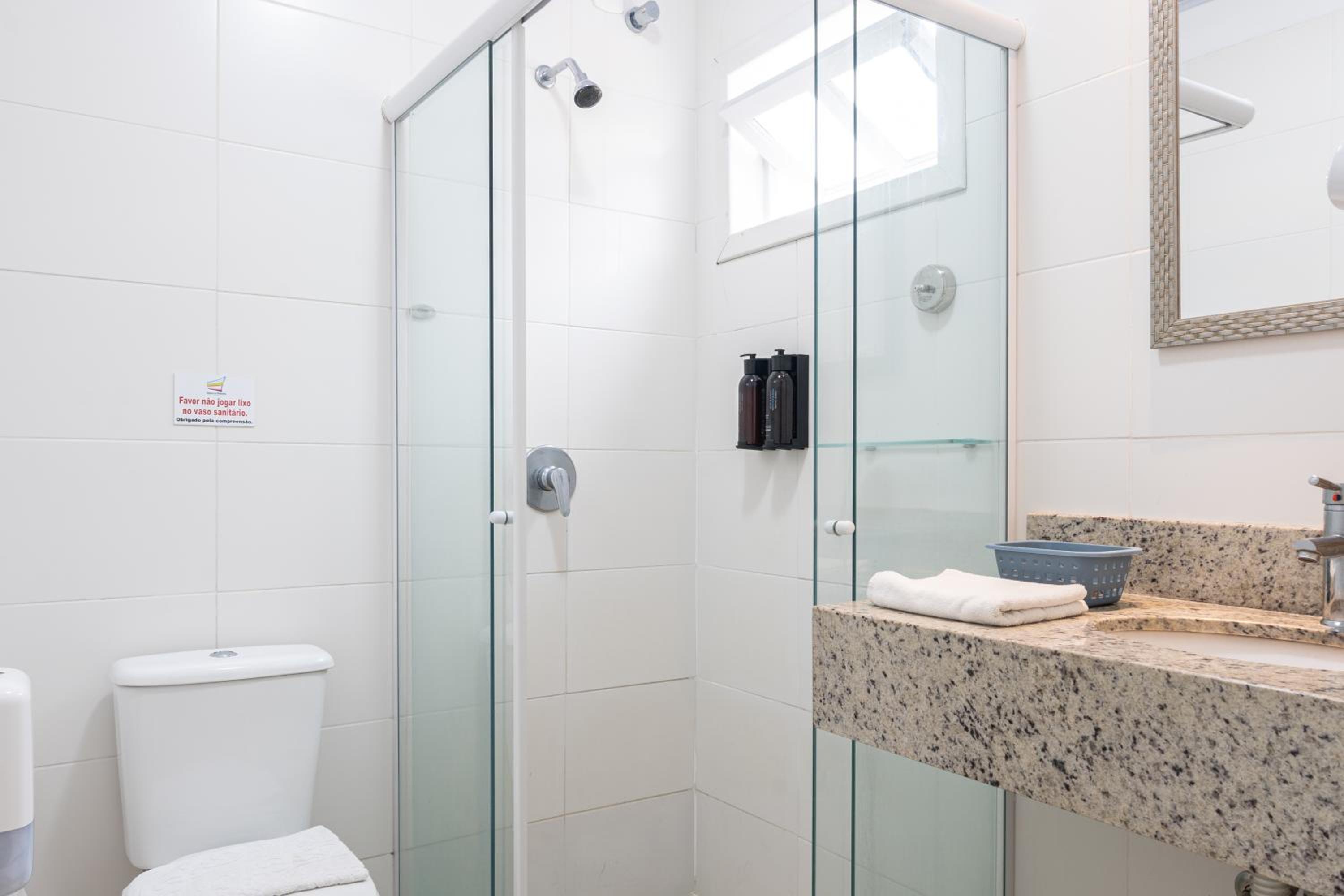 O ar-condicionado estava com cheiro. O apoio do shampoo estava inclinado e os itens ali ficavam caindo. A limpeza do quarto é boa mas poderia melhorar. As toalhas são bem velhas.