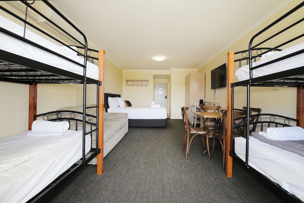 Convenient and nice location, good facilities and the room was tidy and clean. Bathroom/shower was a bit small with no lock but to be expected. Free wifi was good. Staff service was unfortunately quite unfriendly and somewhat hostile from one of the receptionists when we walked into the reception area to check in, we were early and didn’t realise that we didn’t need to check in for our room. Parking bays should be reserved for those staying in the rooms as a lot of the time most of these were full. Pretty good experience overall though!