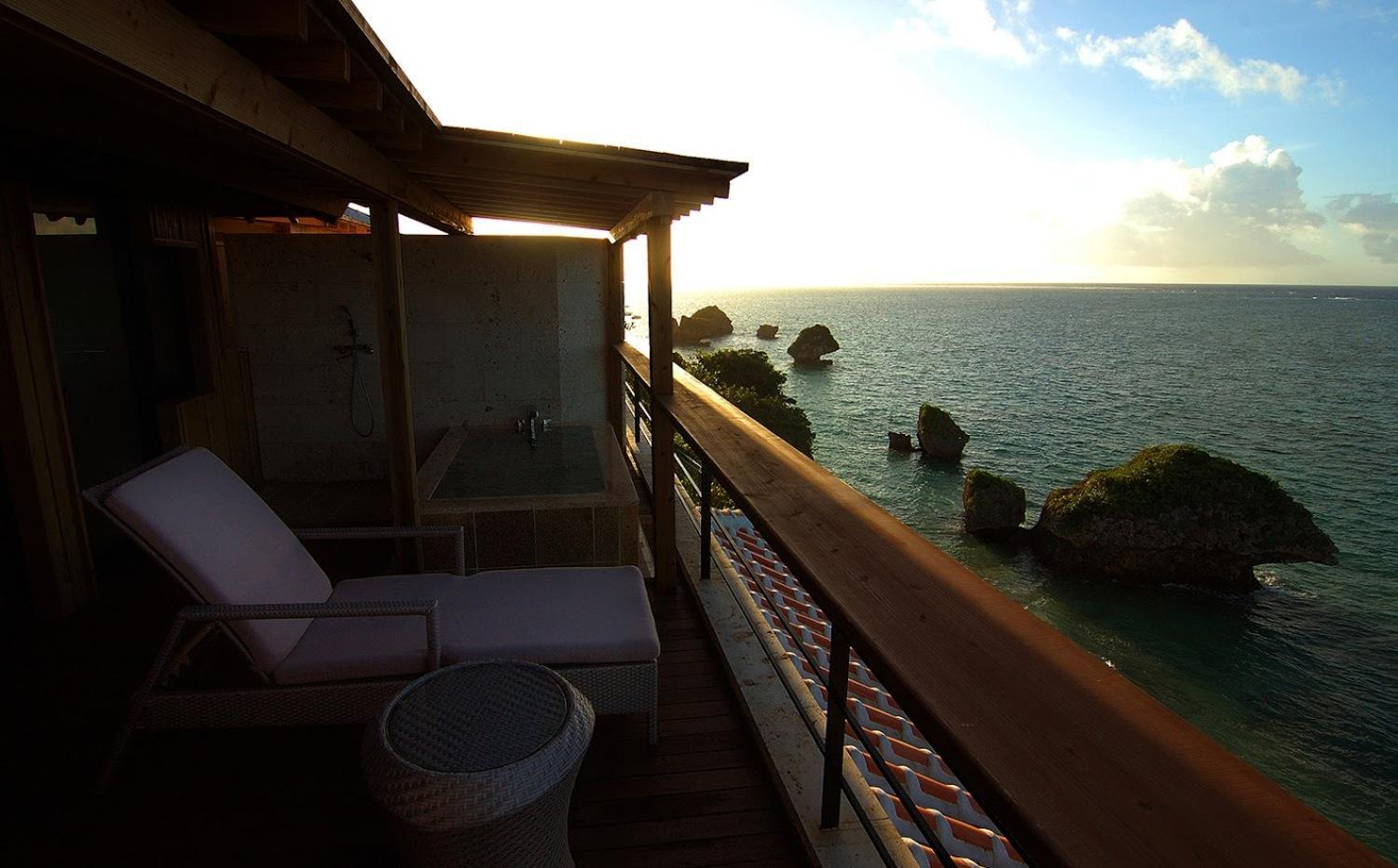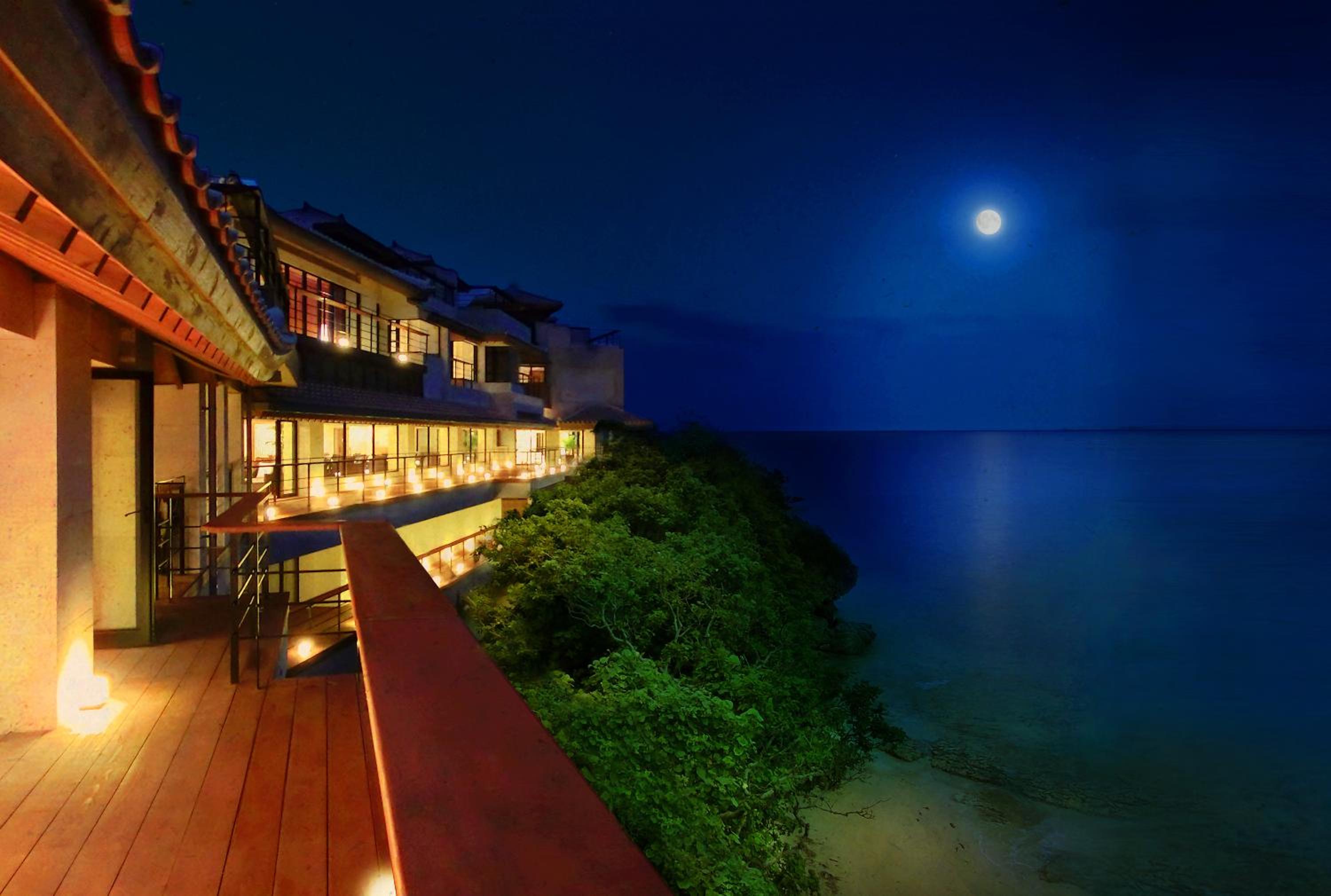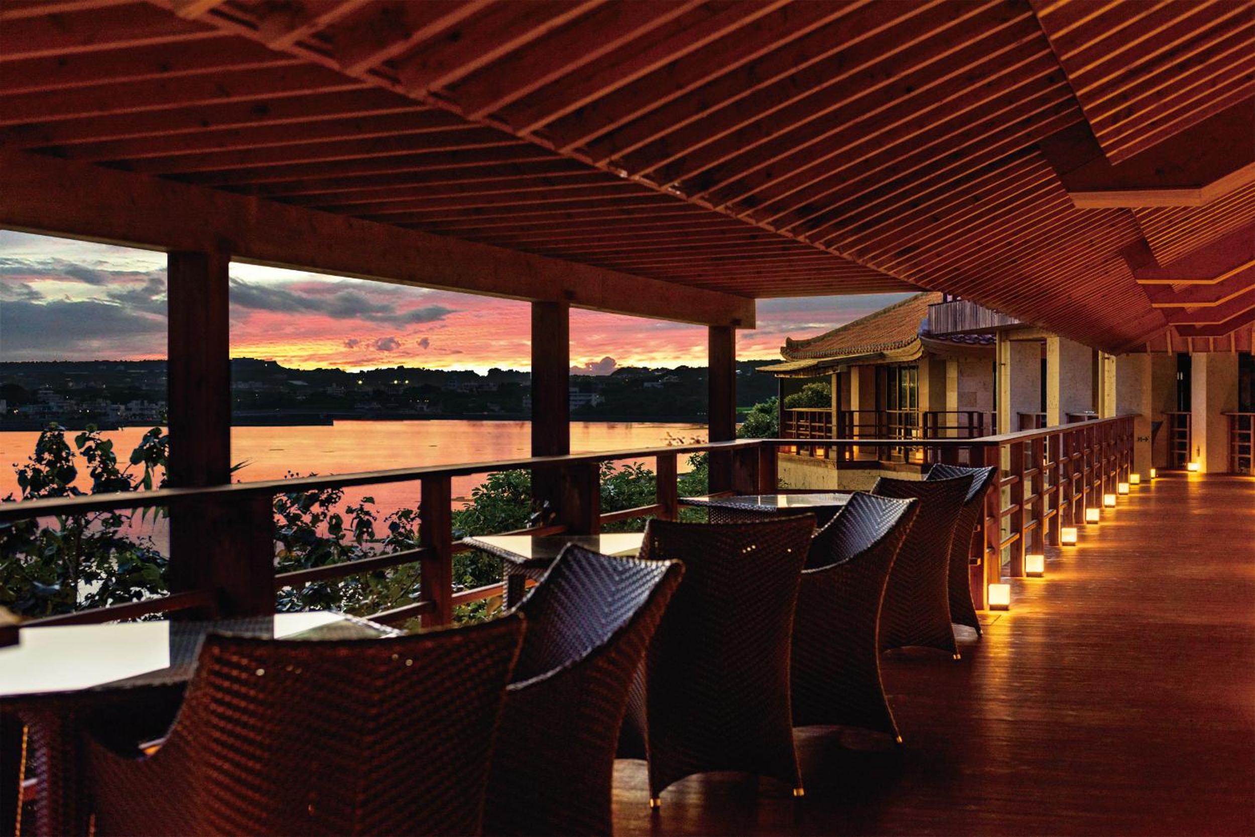 Savor Japanese and Okinawan meals made with local ingredients while enjoying stunning ocean views. Witness beautiful sunsets and sunrises with a panoramic view of Kudaka Island and Ojima Island.