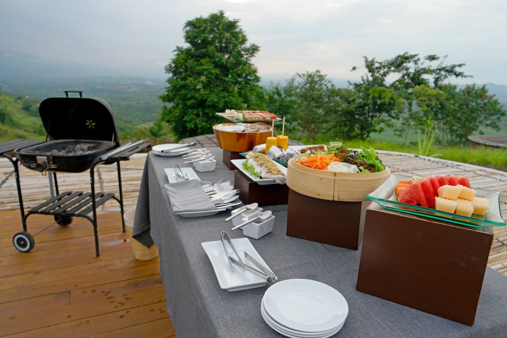We went to Sala Khao Yai to celebrate my birthday. The hotel is isolate on the hill. There are only 7 rooms provided which is very unique and suitable for peacefulness. Food here is delicious. For breakfast, it is included in the package. It is not a buffet but we can order in the menu. There are some different choices served in beautiful style. We had bbq on rooftop with spectacular view. When we checked out, we were impressive with one of the chef here. It’s heavy raining, we were about to leave. He came and told that we should wait for 10-15 minutes to let the fog went away. During waiting time, he served us desserts. Thank you so much for his kindness and service here.