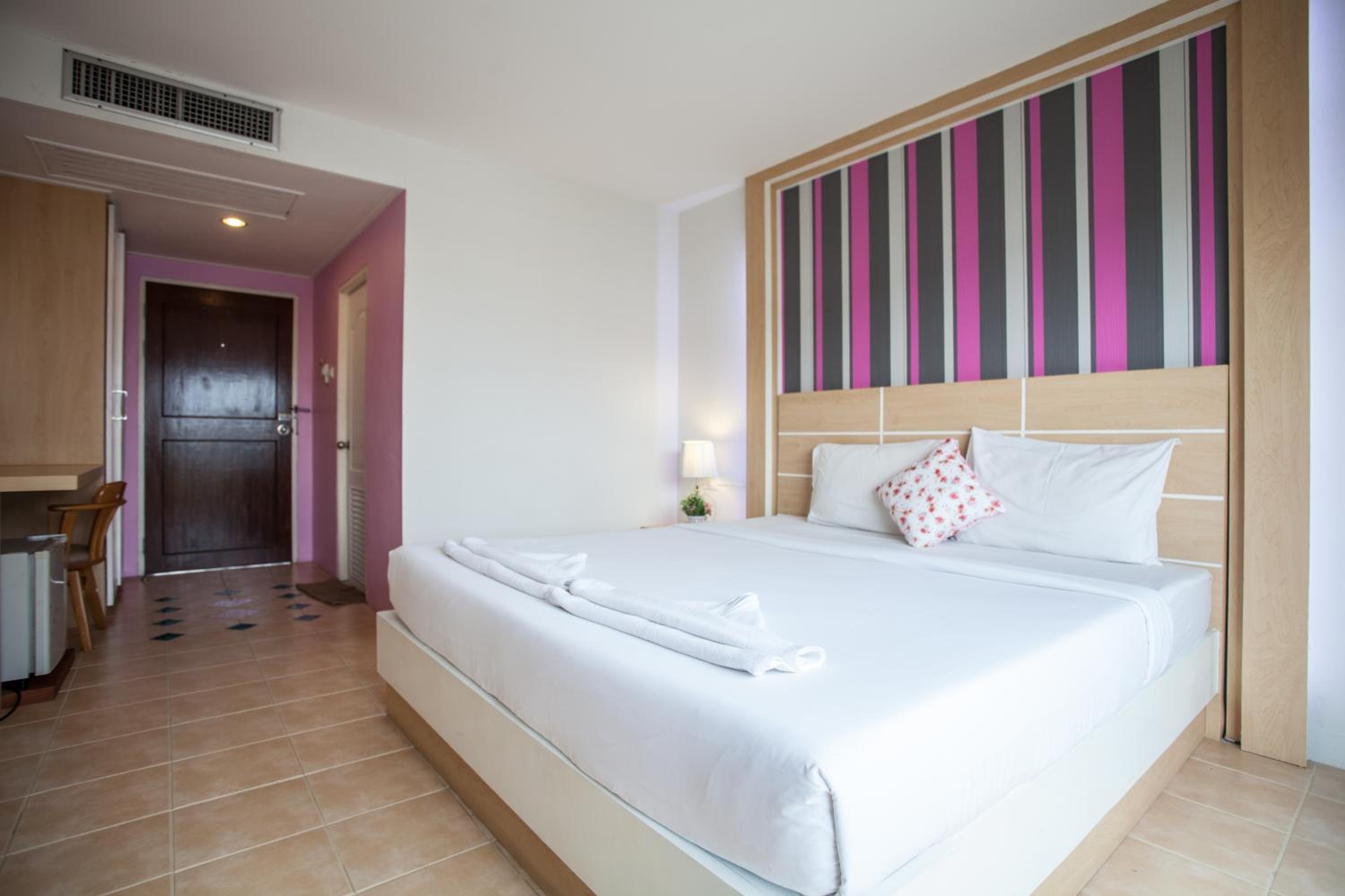 Отель находится между двух ресторанов, которые до 5 утра работают с громкой музыкой. Мы с мужем были уставшие после дороги, и мне было плохо (отравление) я не могла уснуть пол ночи. В туалет страшно было заходить, неприятный запах, очень грязно, чище сходить в туалет на заправке. За 800 бат/ночь очень дорого! Мы жили в отелях дешевле и гораздо круче!
