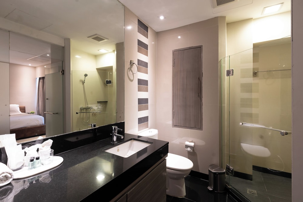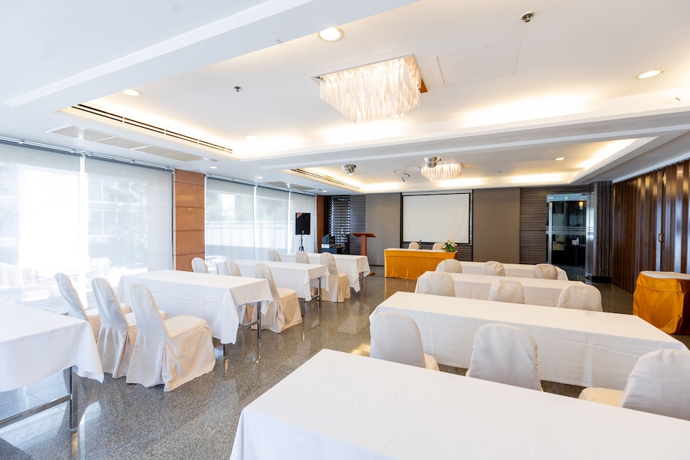 旁邊有三間超商,蠻方便的地方,還有菜市場可以逛逛,對面有麥當勞,換泰幣的地方在下一個捷運站,坐計程車也方便,服務人員都蠻客氣的,只是早餐單調了點,下次還會再度住宿