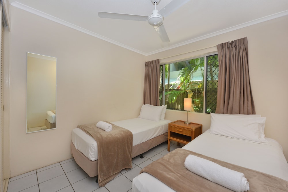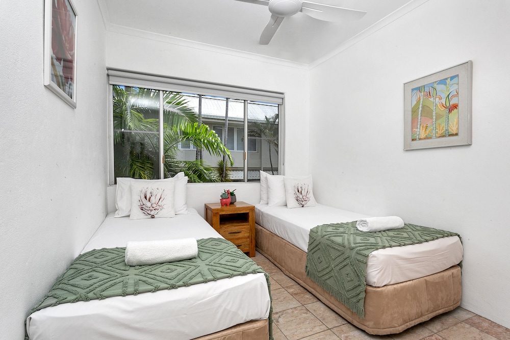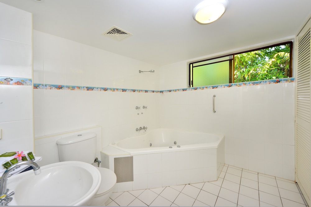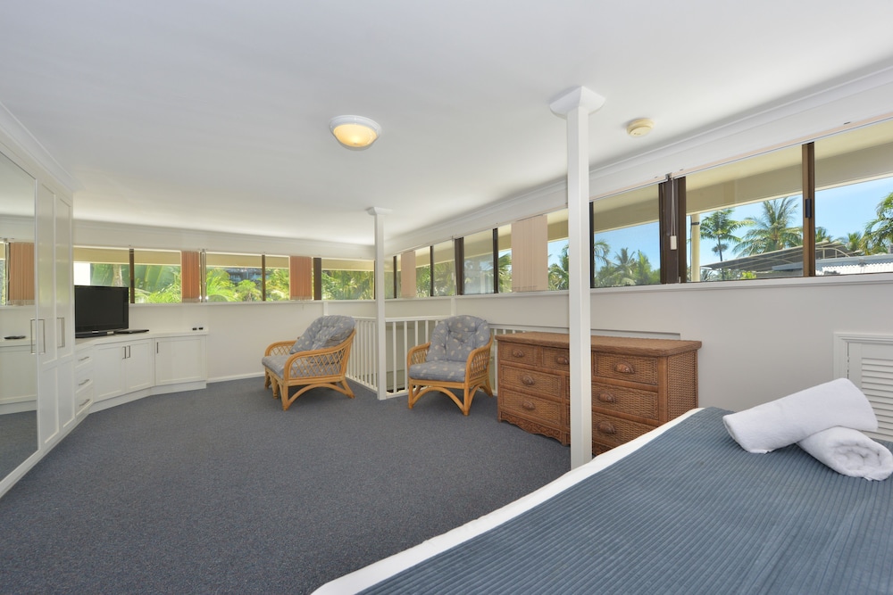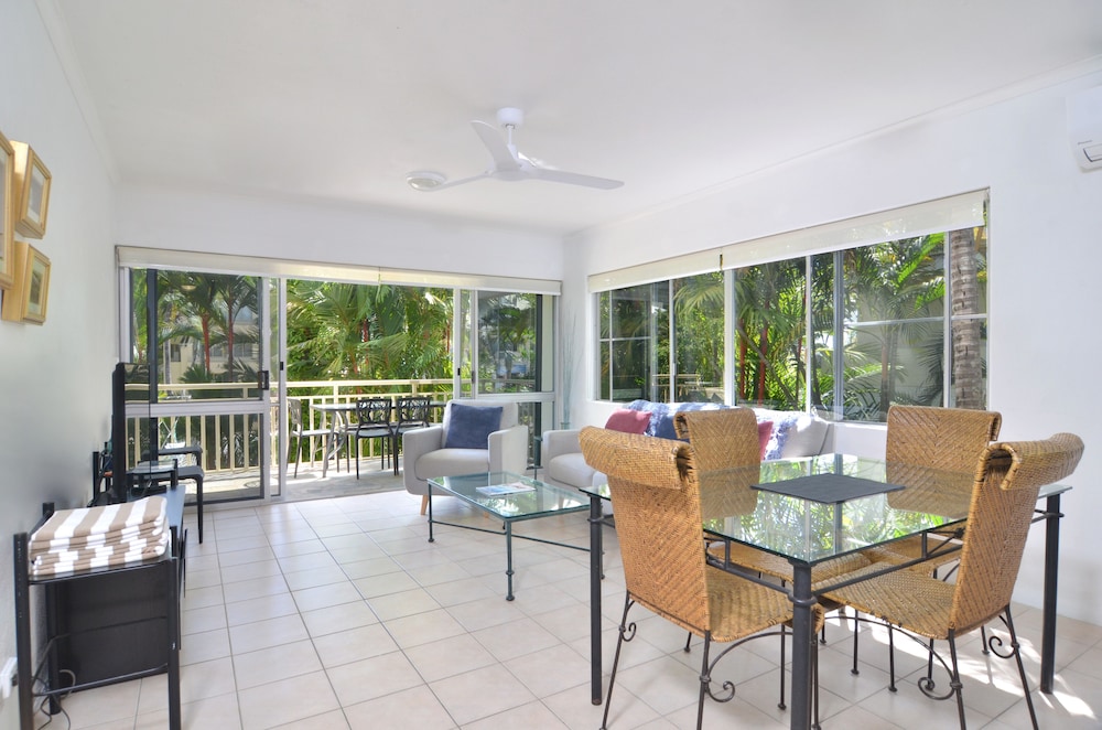Perfect location on the quiet side of the Macrossan, right next-door to Four Miles Beach. Easy street parking (the on-site parking spaces were extremely tight). Lovely spacious apartment with plentiful amenities. The complex is very comfortable with pools, bubble baths and BBQs. We will be back for sure.