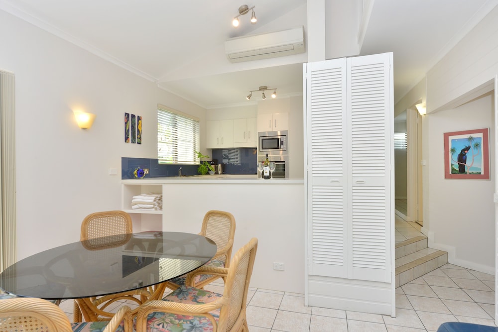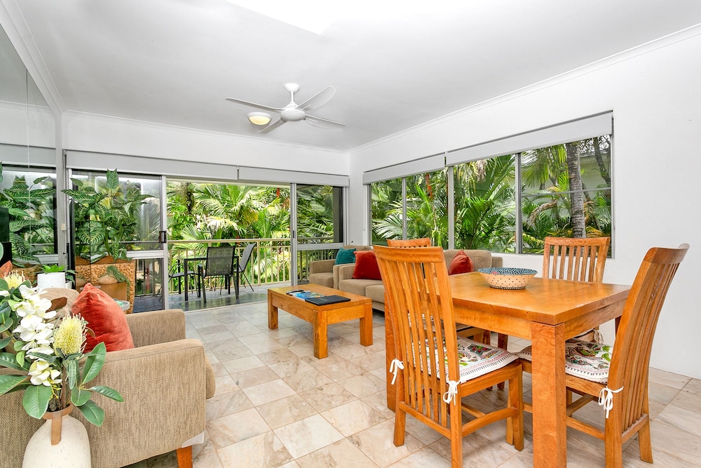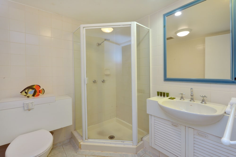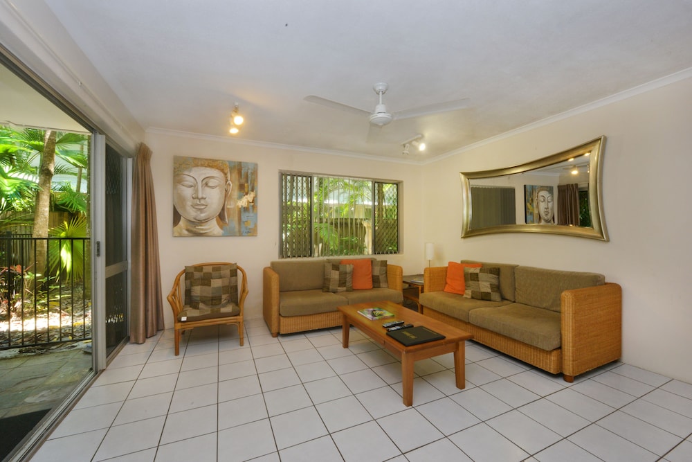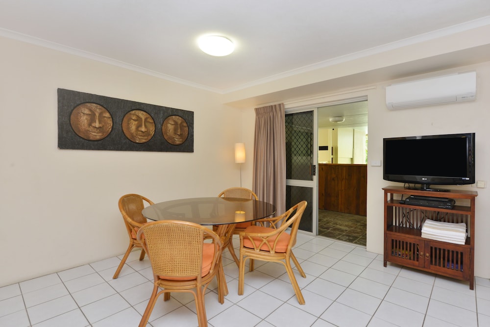 Perfect location on the quiet side of the Macrossan, right next-door to Four Miles Beach. Easy street parking (the on-site parking spaces were extremely tight). Lovely spacious apartment with plentiful amenities. The complex is very comfortable with pools, bubble baths and BBQs. We will be back for sure.