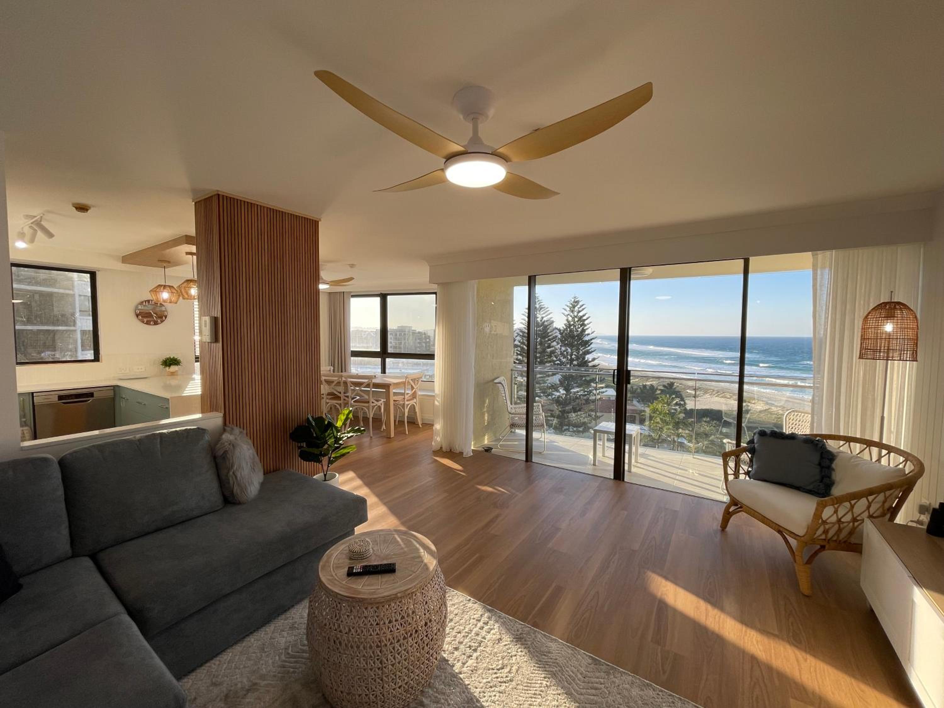 Fantastic location to patrolled surf beach, creek, cafe and walking track. Lockup storage for boards, underground car park, one of the tidiest places I have ever visited. Had board games and puzzles. Nice heated pool and spa. Was able to offer a late check out till 11am. View towards Surfers Paradise was so beautiful.