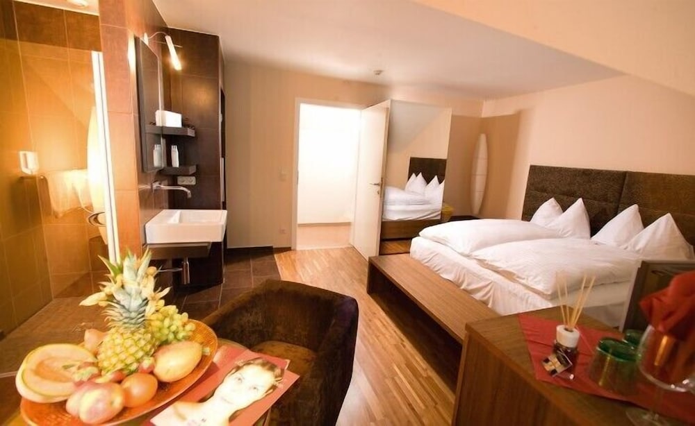 Ich habe eine Comfort Zimmer gebucht. Begeistert hat mich : die geteilten Räumlichkeiten von Bad und WC. Balkon war klein, fein und vor allem vorhanden. Es befindet sich ein riesiges Fernsehen im Zimmer. Es stehen für den Wellnessbereich zu Verfügung Bademäntel und eine vorbereitete Tasche mit Handtücher. In der Nähe von Rezeption wird Nachmittag eine Nachmittags Jause vorbereitet: Obst, Kuchen, Joghurt und mehr. Man zahlt nur seine Getränke und die Jause ist in Zimmerpreis, genauso wie das Frühstück am nächsten Tag, im Preis inbegriffen.