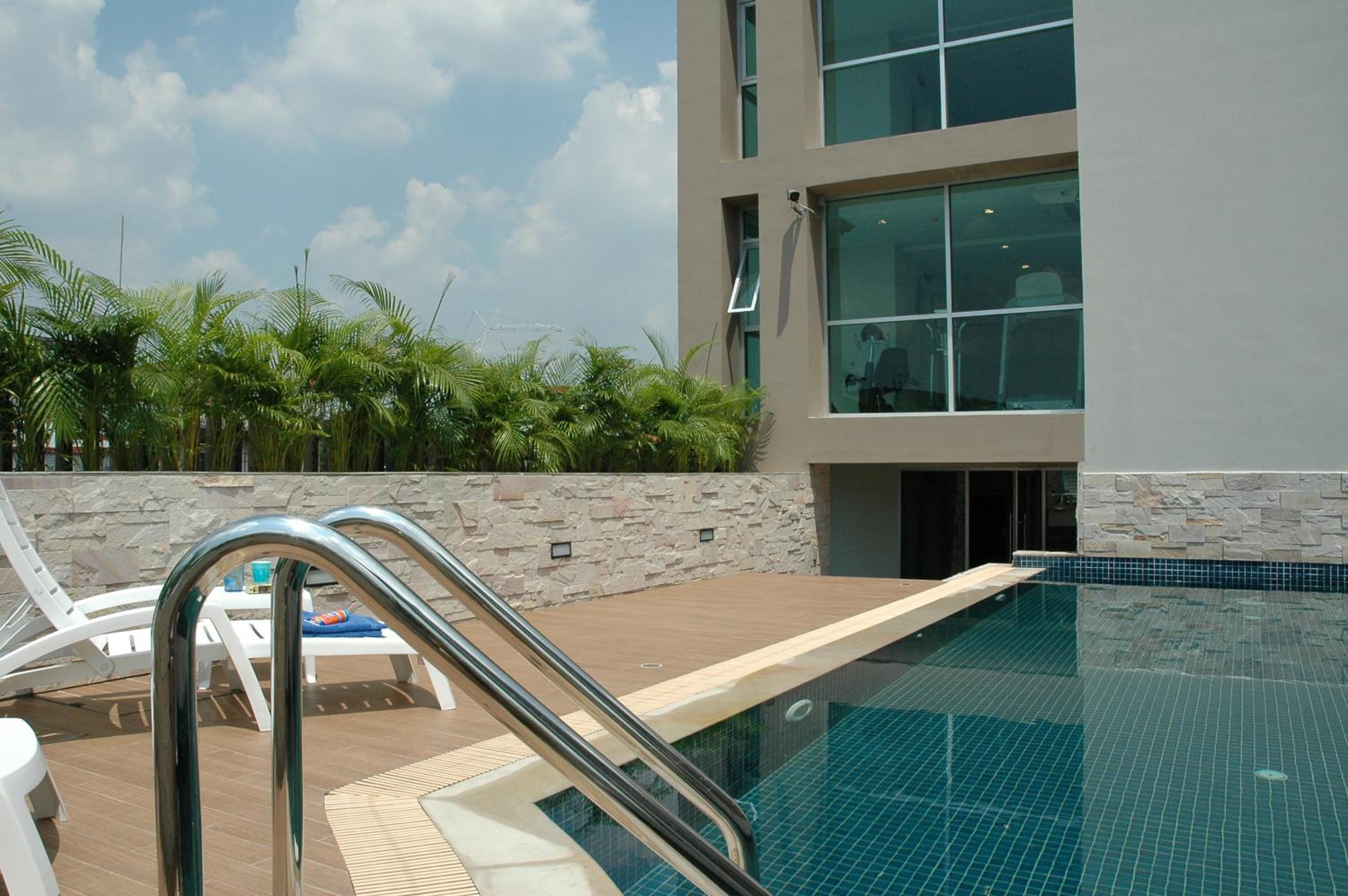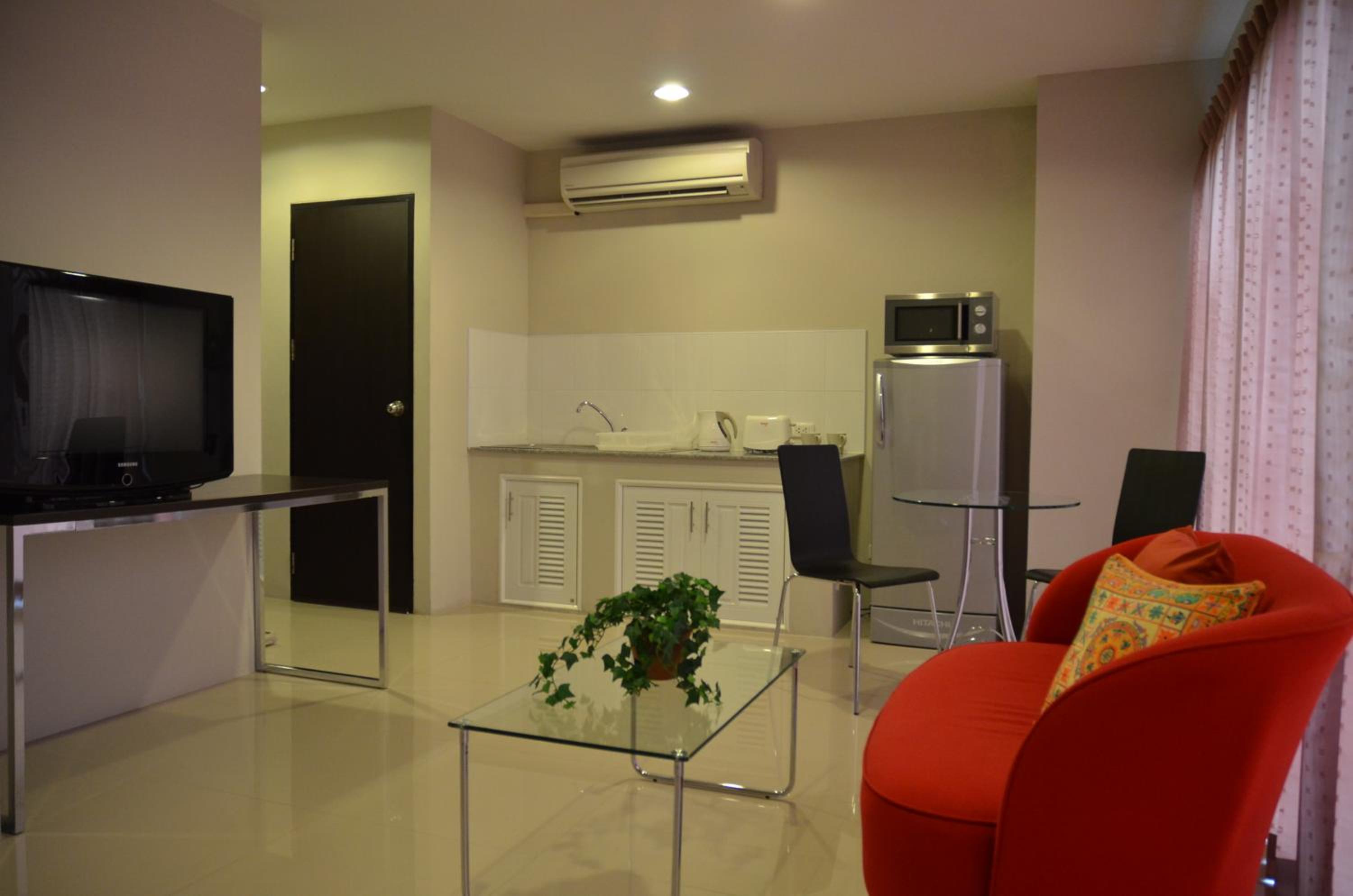 Each room at Bangkok Living features a kitchenette, sofa, balcony, and en suite bathroom with hot shower facilities. The outdoor pool, fitness room, and garden provide ample space for guests to unwind and relax during their stay.