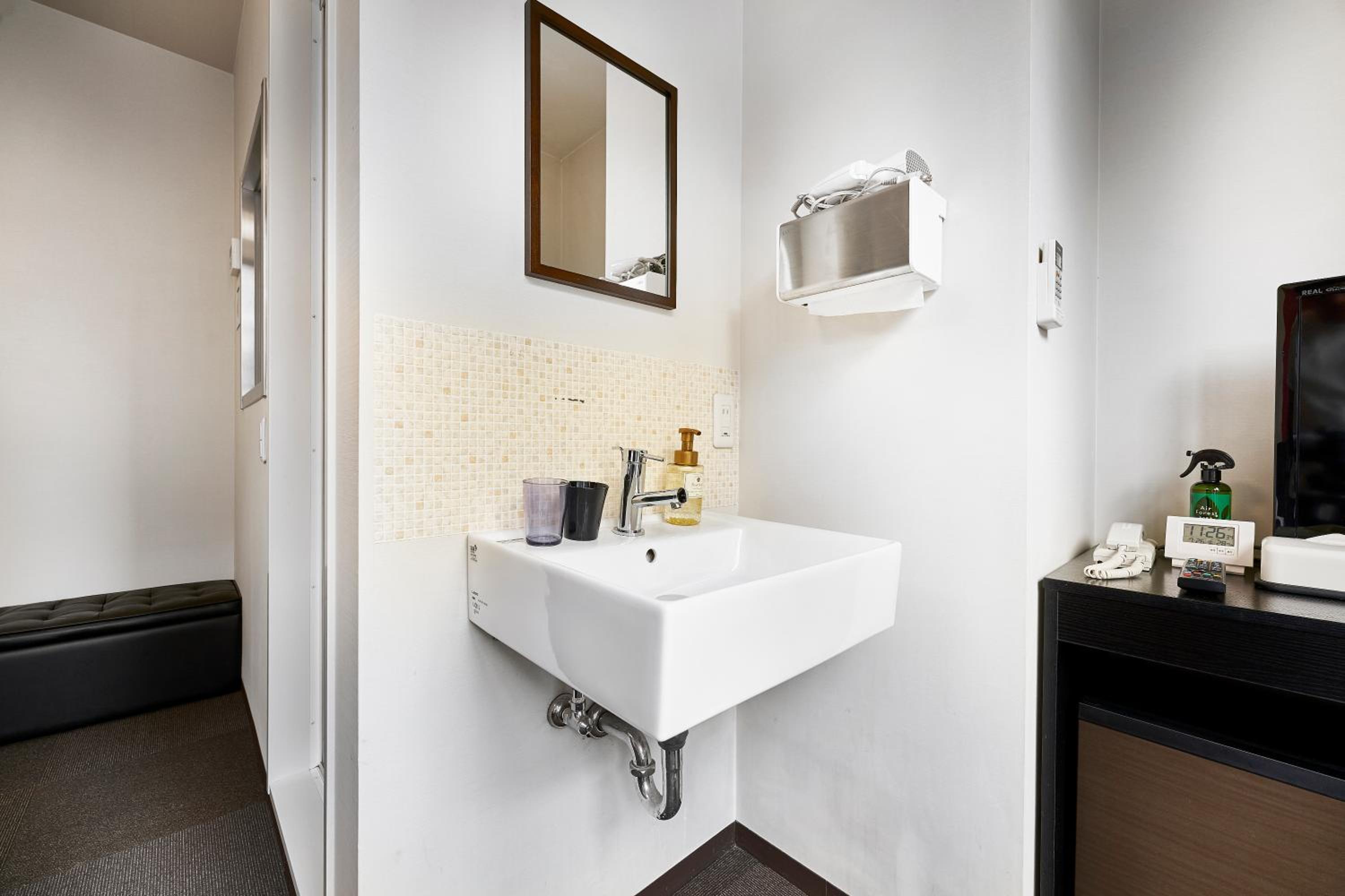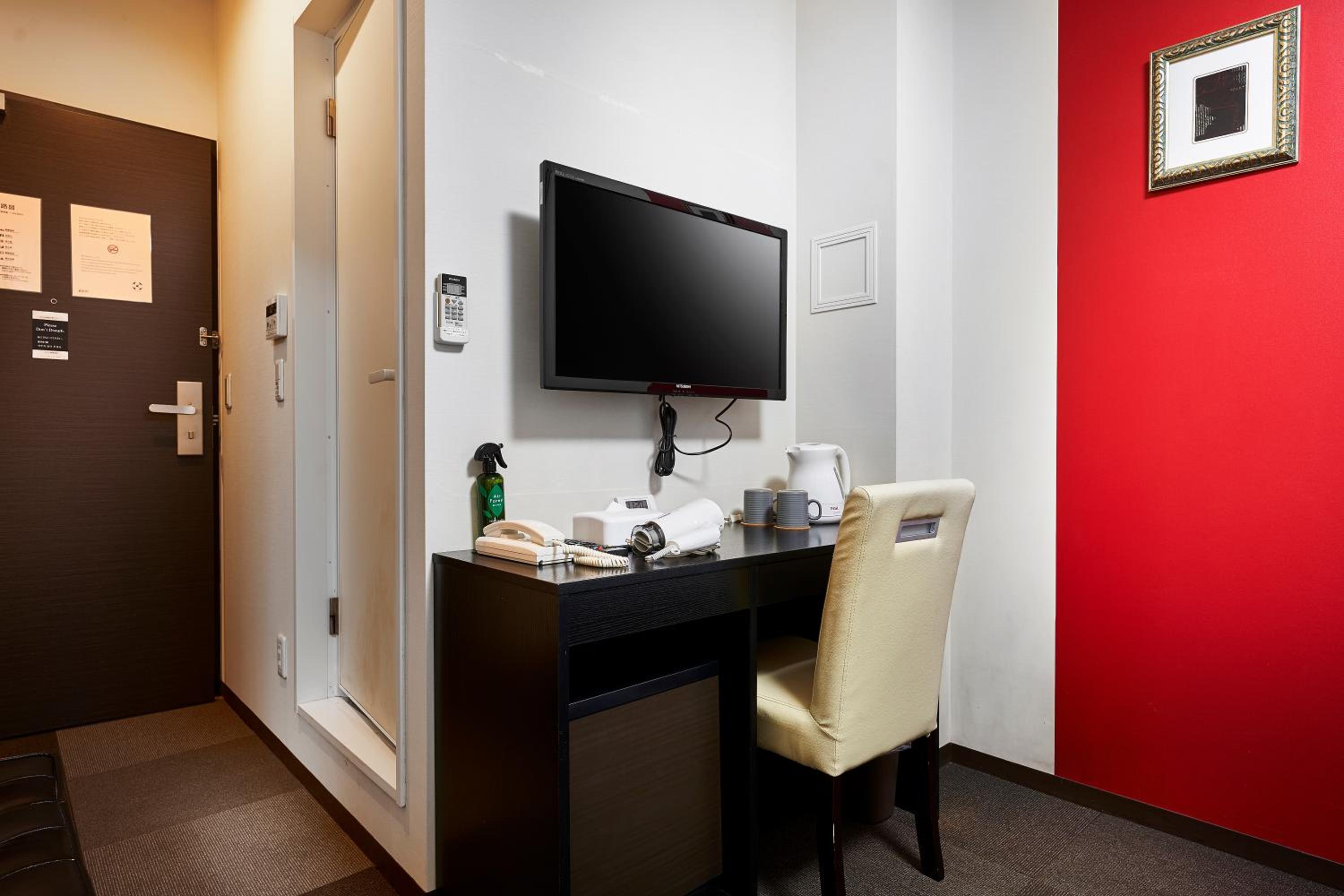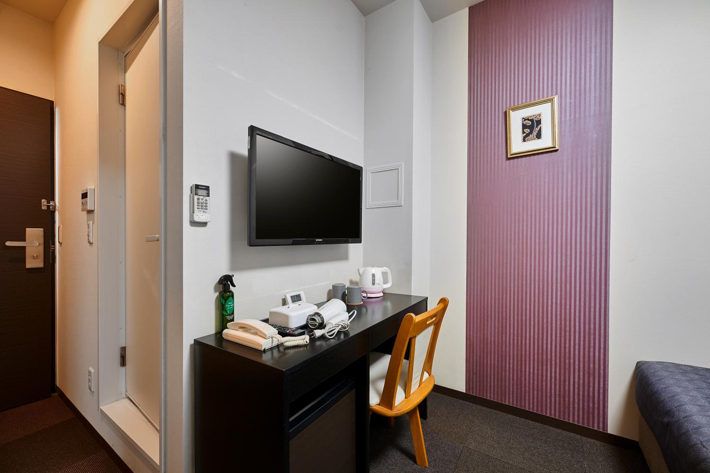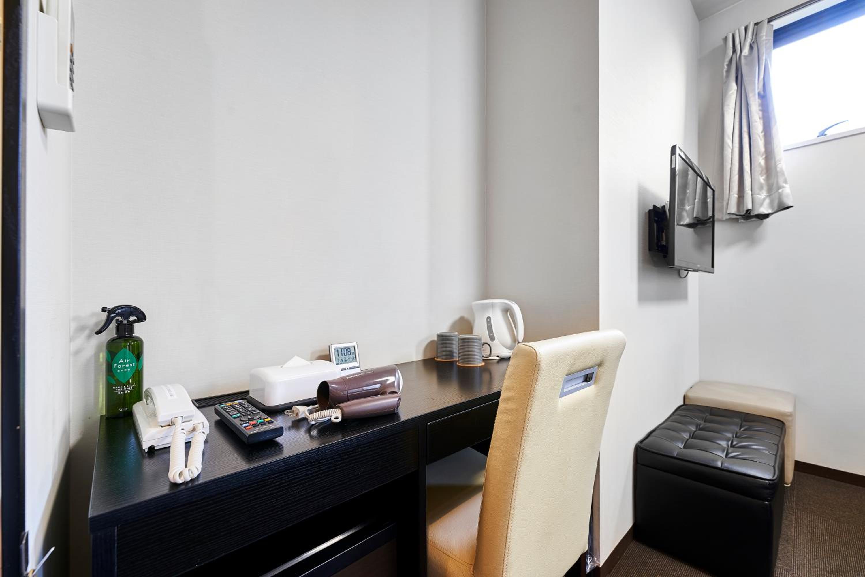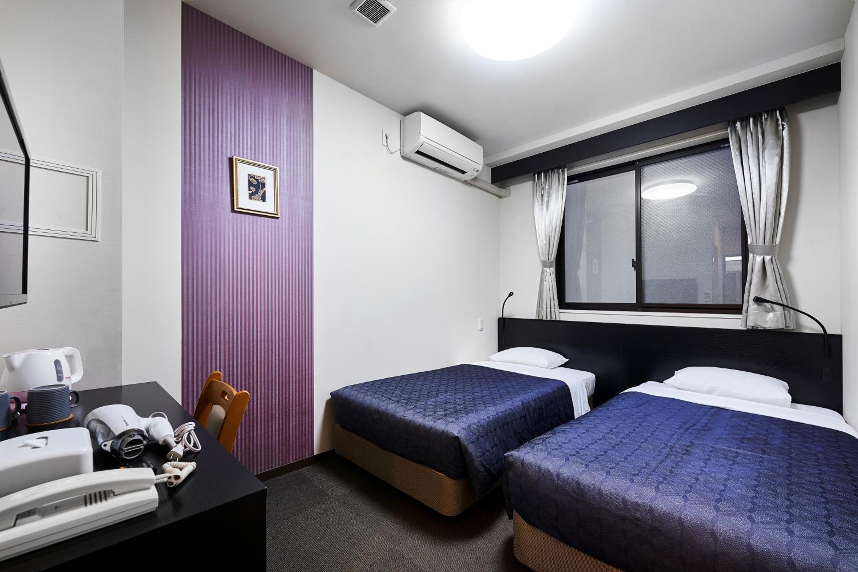Hotel básico y habitación mínima.
