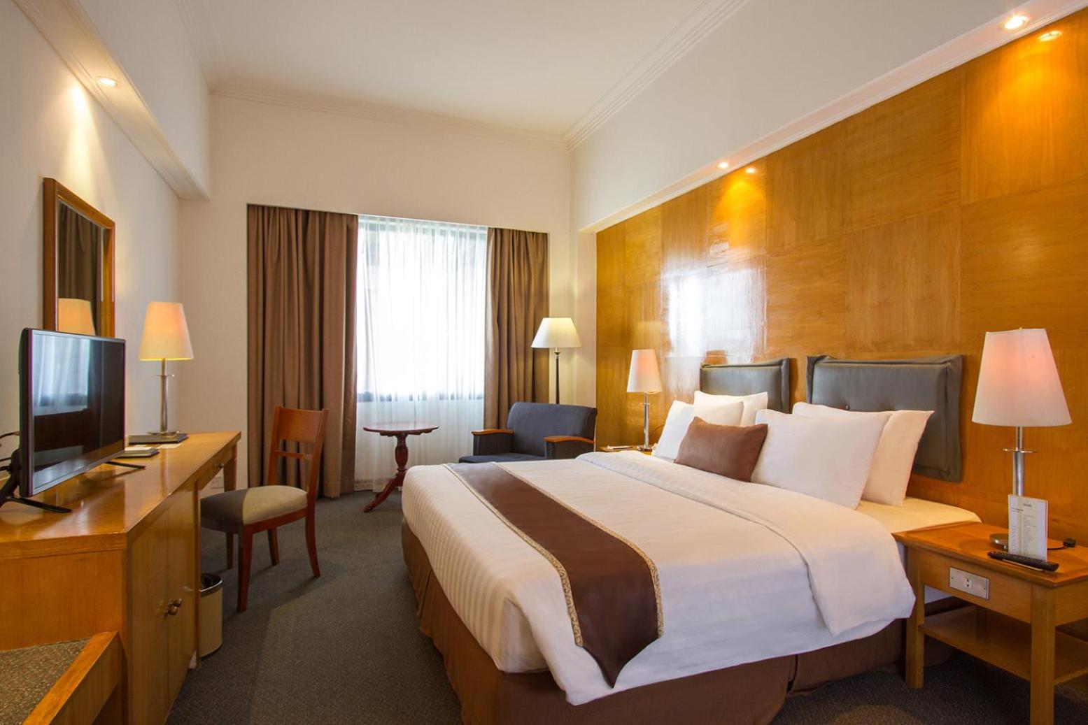 Older property but room was clean and comfortable. Not enough plugs. With Fi a nightmare. Great position opposite istana and botanical gardens. The staff were very friendly and helpful. Breakfast included but ordinary but they happily cooked me two boiled eggs. Nice to have a bar in rather dry Bogor. I will stay again