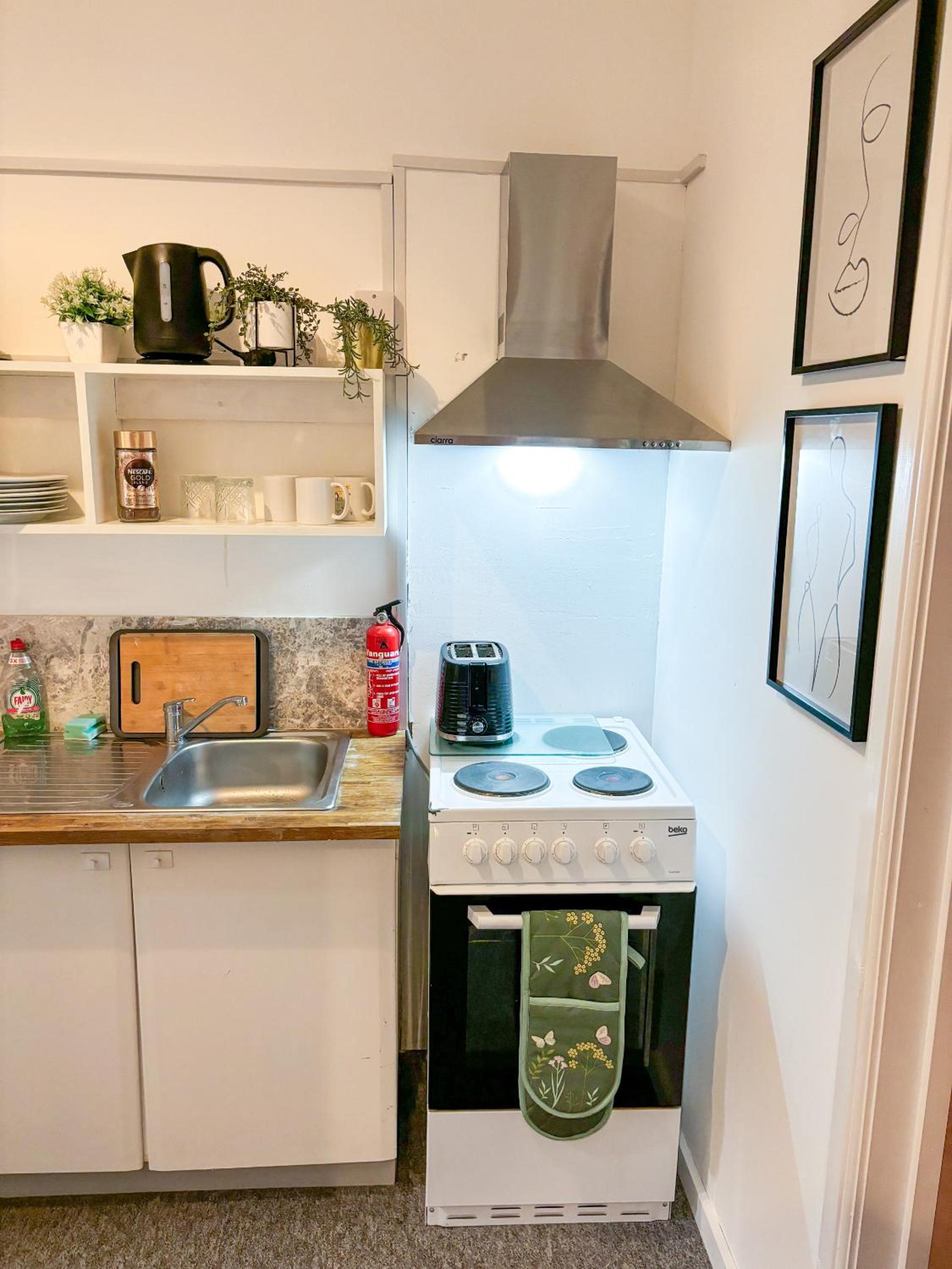 Kettle, tea and coffee, microwave and fridge. There was a little private courtyard which was nice.