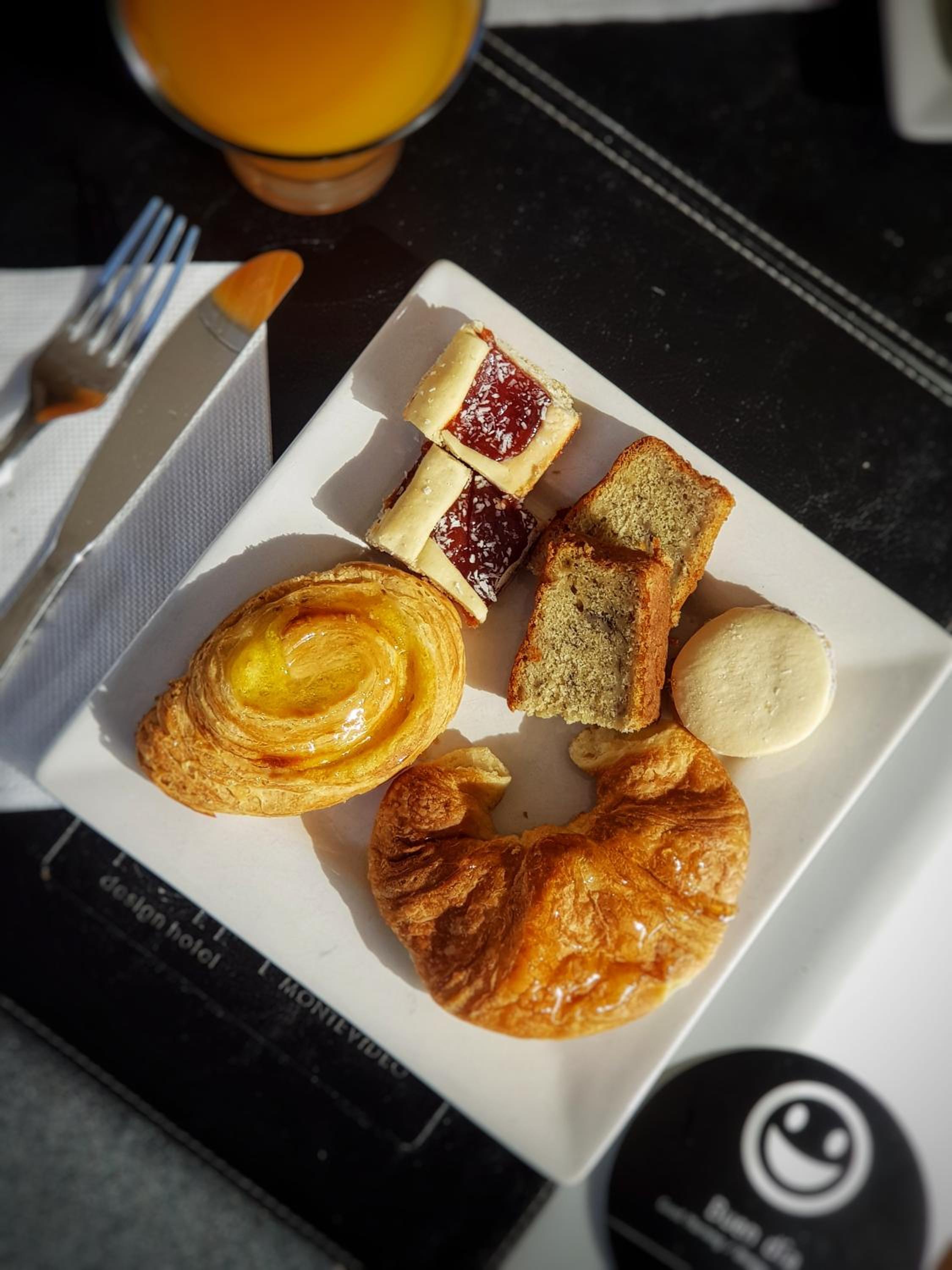 Café da manhã deixa um pouco a desejar, mas parece ser o normal para o Uruguai. Poucas opções de pães e frutas.