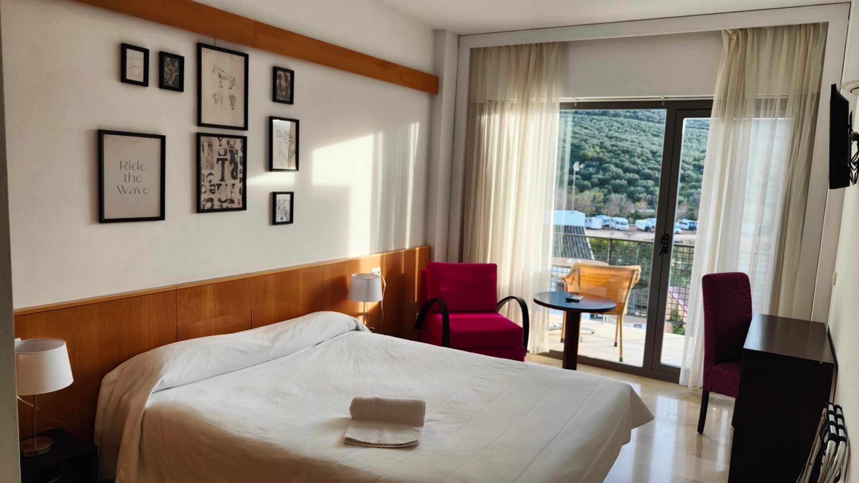 Une mention spéciale pour l'accueil très sympathique de l'hôtesse qui parle un peu français. Lits confortables. Balcon très ensoleillé. La proximité de la sierra et les beaux paysages d'oliveraies. Bon restaurant.