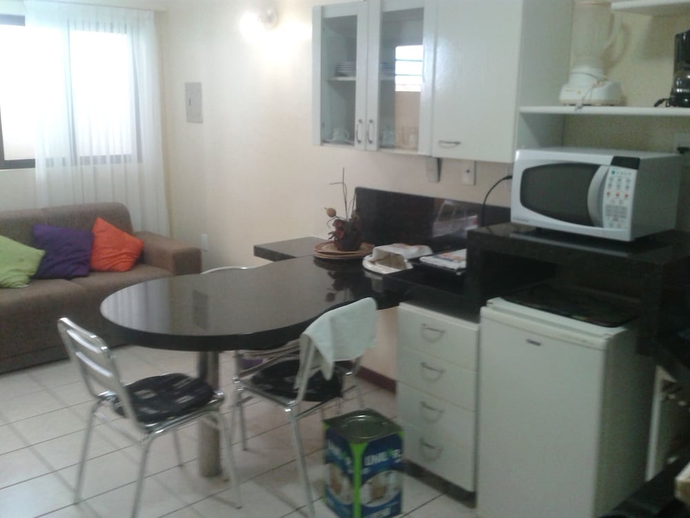 Espaço do flat, camas boas, ar funciona muito bem wi fi também. A localização é perfeita dá pra fazer muita coisa a pé pois tem tudo perto. Supermercado na frente do flat e vários restaurantes bons próximo que dá pra ir andando. Tem opção na frente de alugar patinete elétrico pra quem gosta. Praia na frente muito bem frequentada recomendo a barraca do BA e da Carla são muito agradáveis.