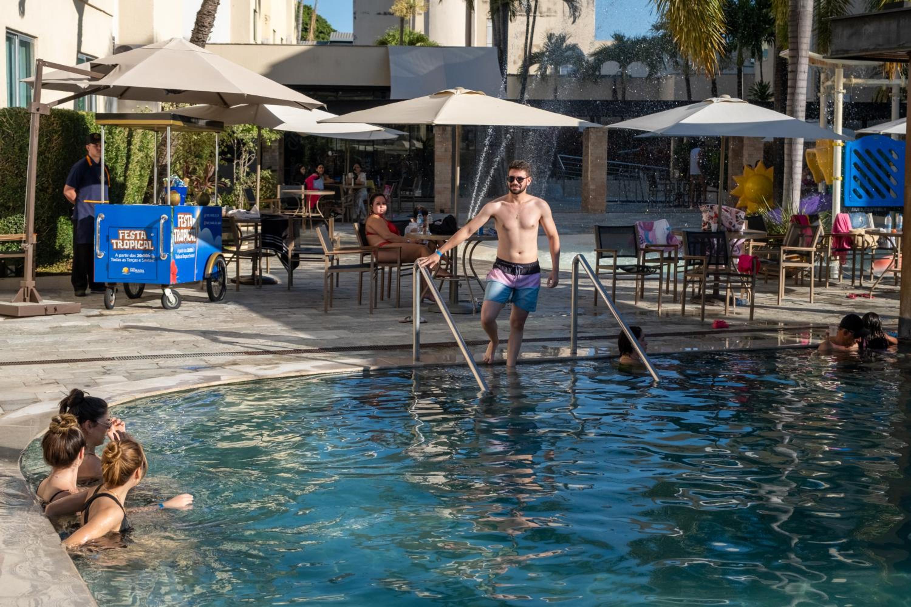 Indulge in a buffet breakfast with a variety of fruits and baked goods, and savor Brazilian and international dishes for lunch and dinner. Unwind at the bar with snacks and drinks, or explore nearby restaurants, bars, and shops for a taste of local culture.