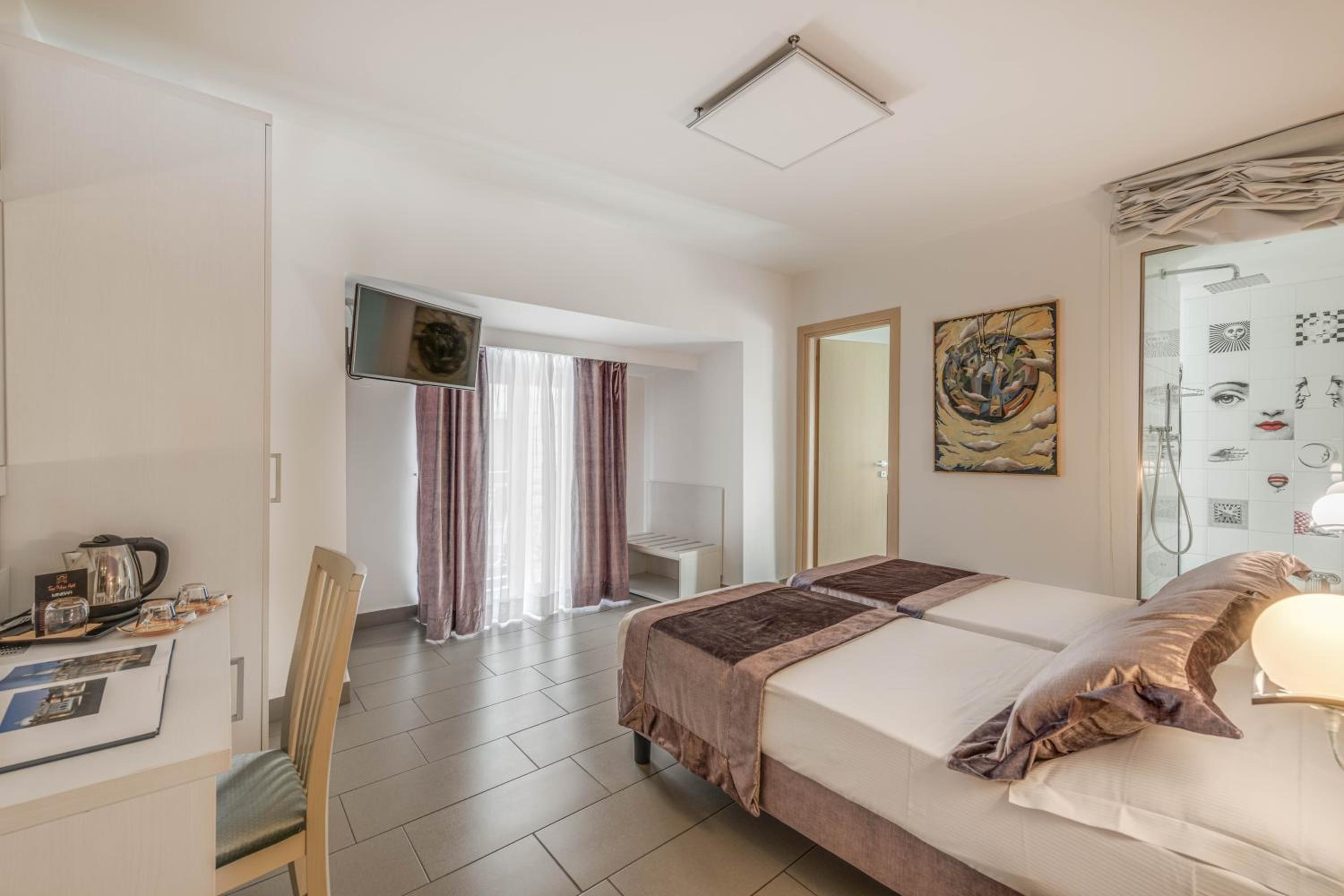 Conveniently situated just 10 minutes away from Cavour Metro Station, Trevi Palace Hotel provides easy access to explore Rome's iconic landmarks such as the Coliseum and Termini Train Station. Book your stay now for an unforgettable experience!