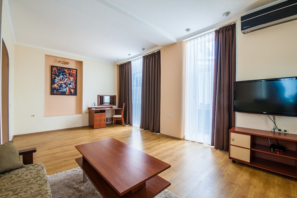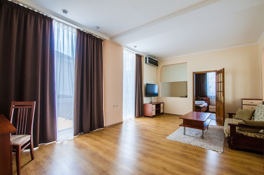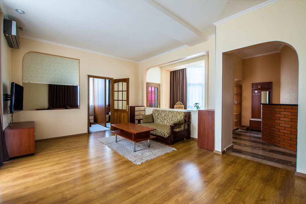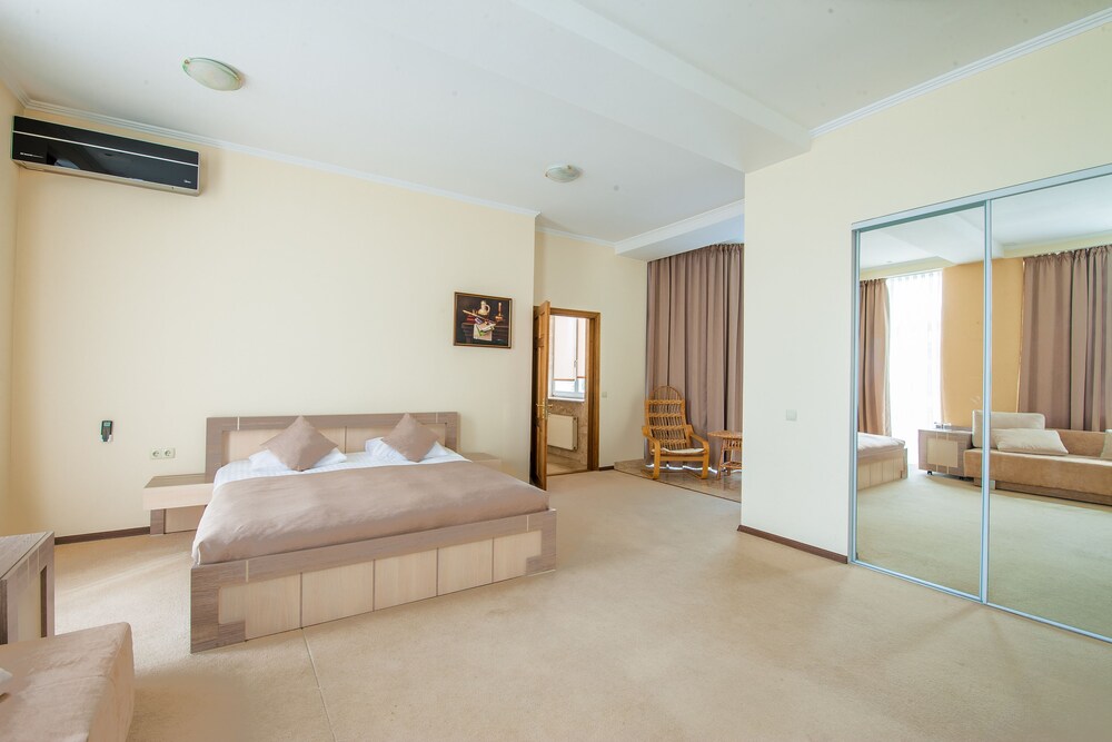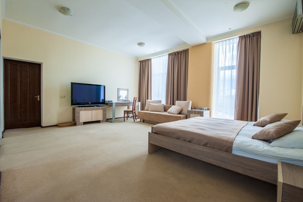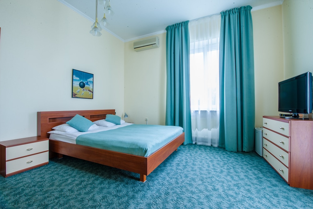 В целом стандартный миниотель на 8 номеров в удаленном районе Киева, но рядом с метро. Отсюда вытекают основные плюсы и минусы. Из плюсов: достаточно большие номера, индивидуальное отношение, ТВ с кучей каналов, в целом тихо, доступна сауна с маленьким бассейном и привлекательная цена за номер. Из минусов: отель трудно найти, дешевая мебель в номере, мало розеток, в номере холодно было (но есть обогреватель), на завтрак накрывают рядом с ресепшн.