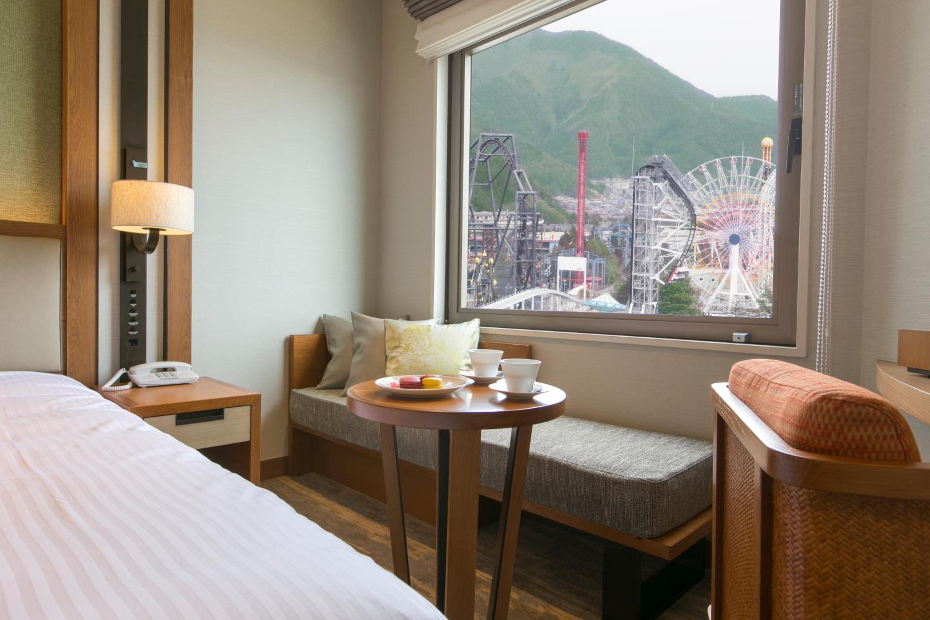 ห้องพักสะอาด สวยงาม อาหารดี การบริการที่ยอดเยี่ยม สามารถเข้าไปเดินชมสวนสนุกได้ มีออนเซนสาธารณะขนาดใหญ่ และวิวฟูจิที่สวยงาม
