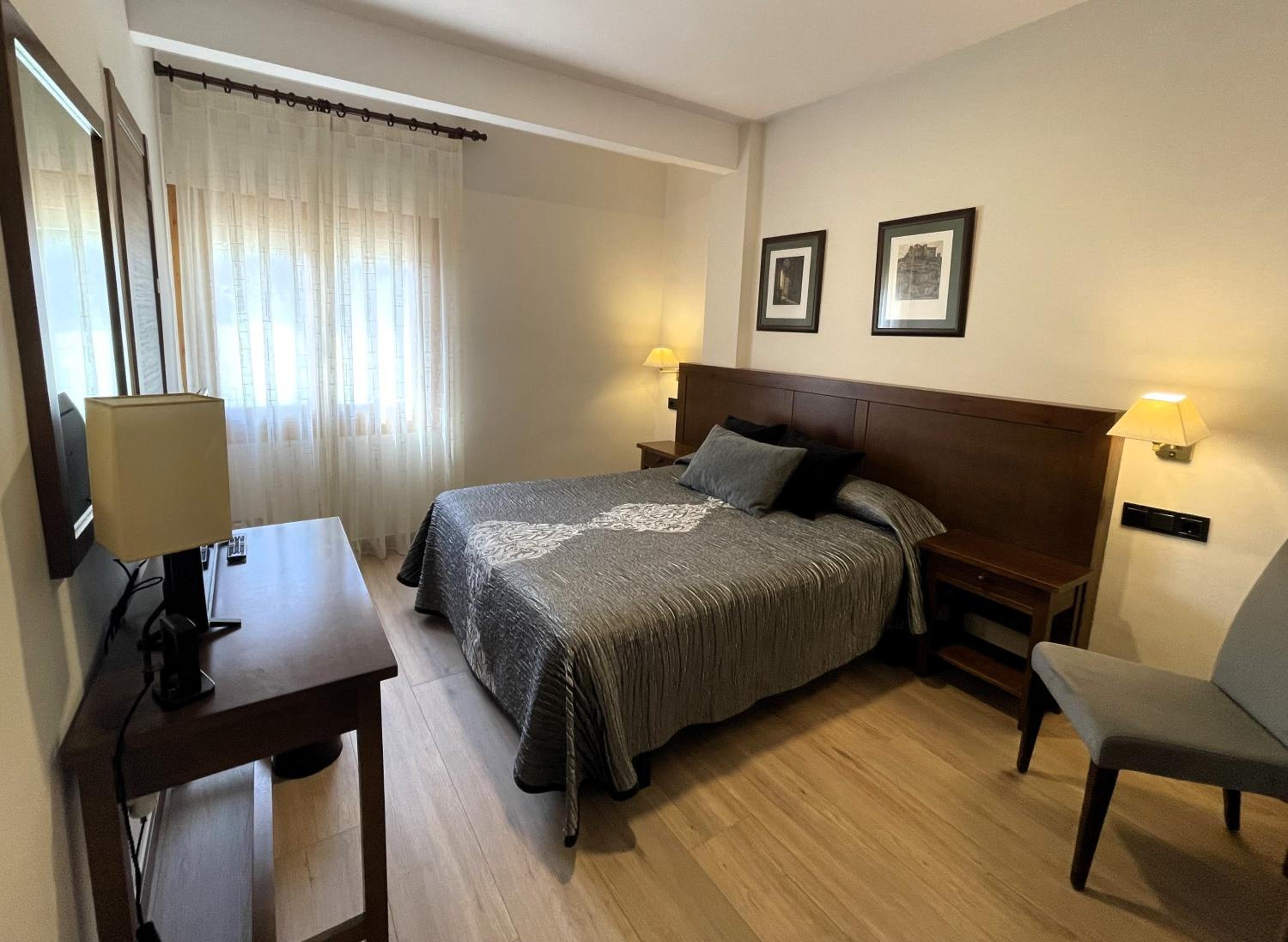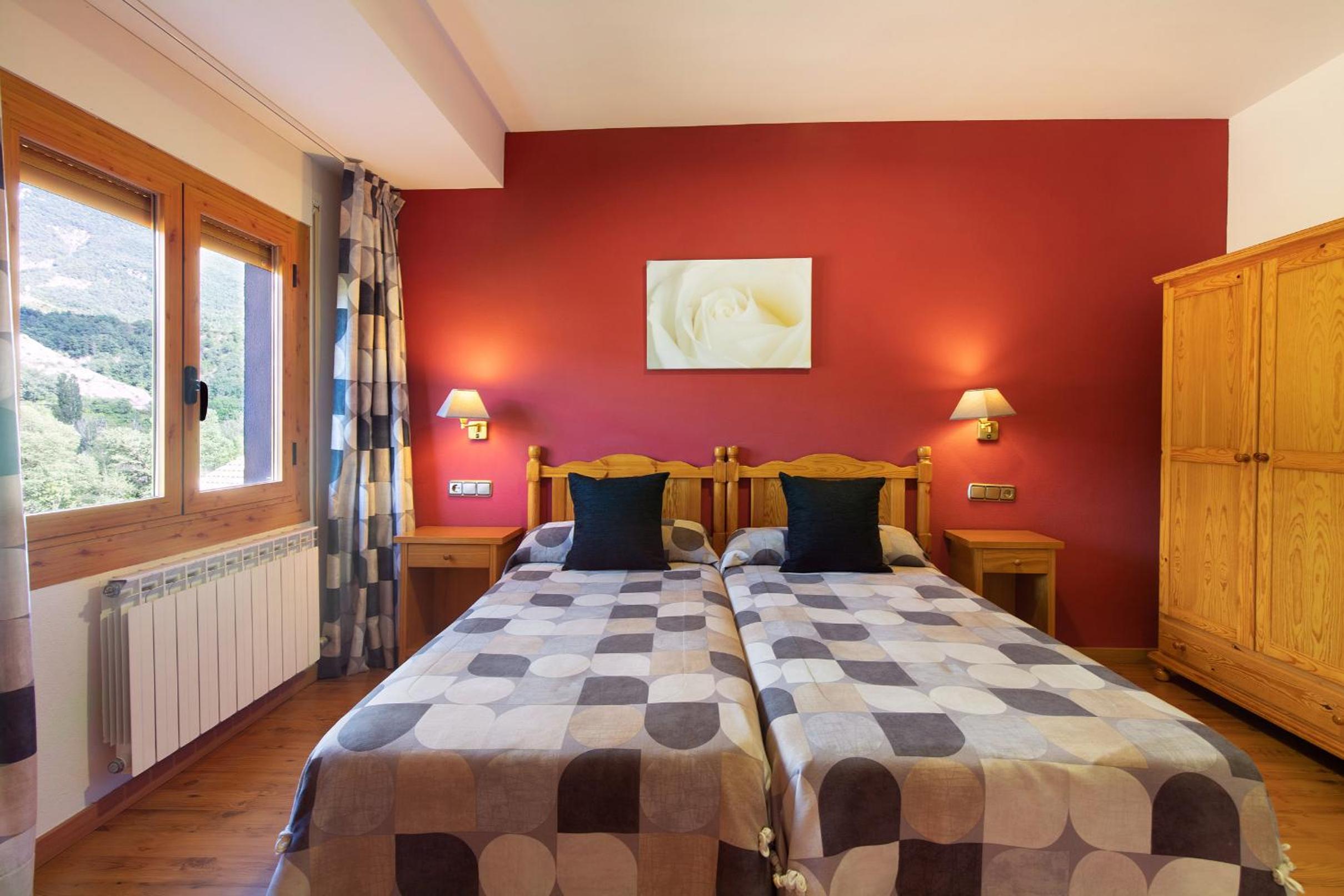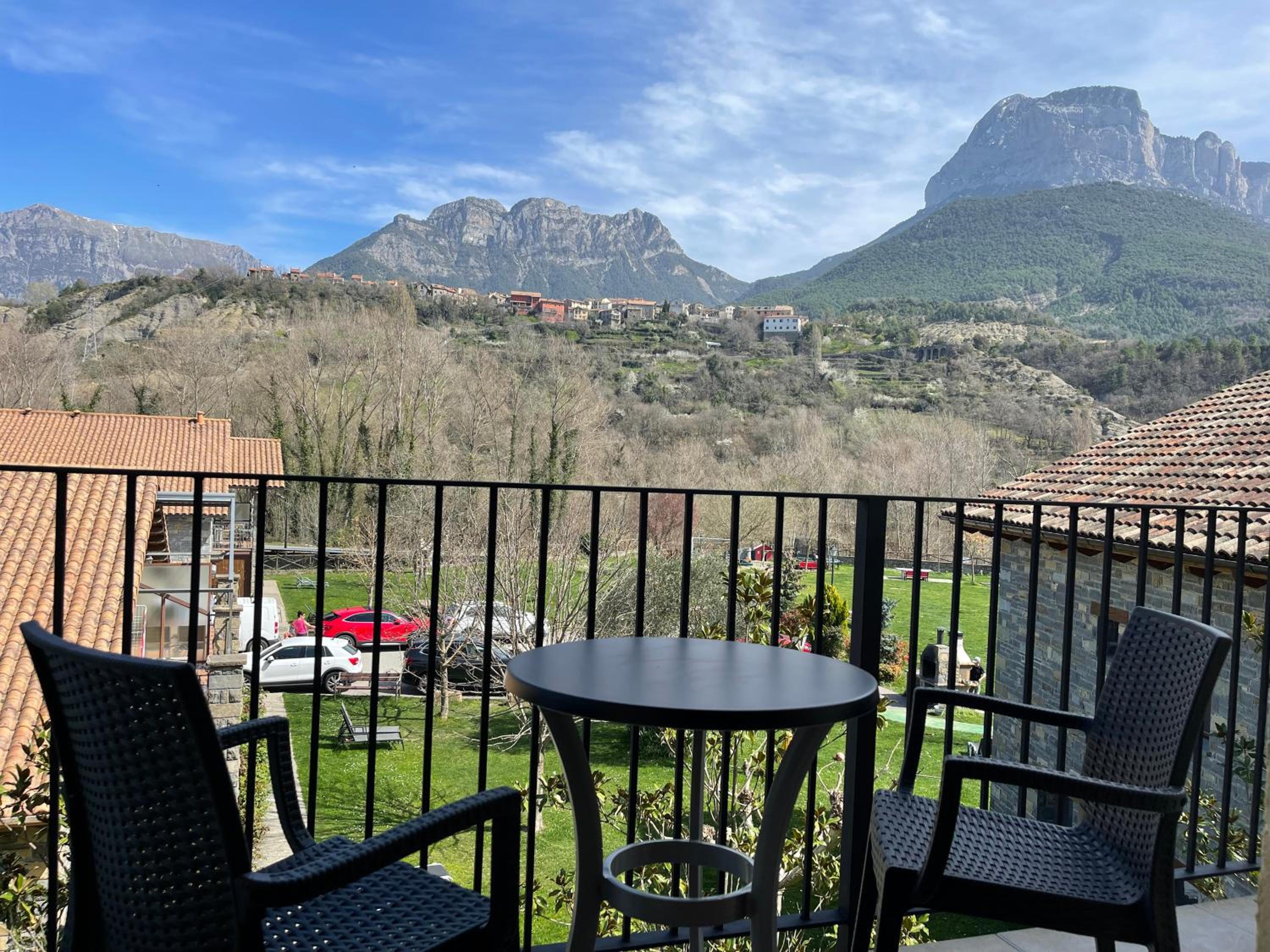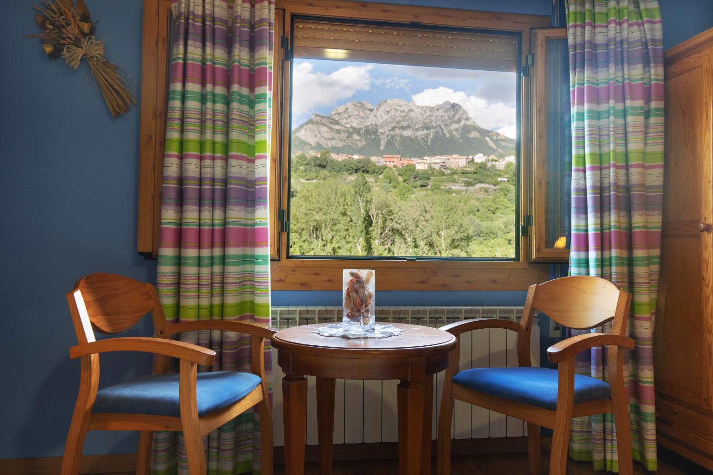 Habitación amplia, recién reformada, camas cómodas y vistas increíbles a la Peña Montañesa.