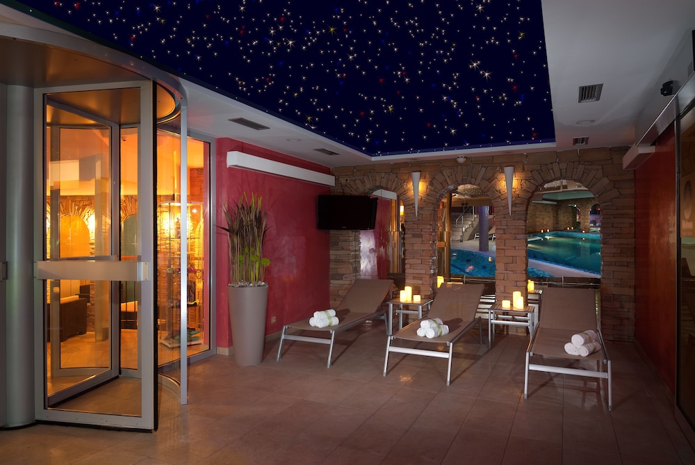 WLAN in unserem Zimmer hat nicht funktioniert, aber die nette Rezeptionistin den Preis vom Billiard erlassen. Wir konnten Schwimmbad und Wellness 2 Stunden kostenlos benutzen. In der Garage gab es einen Lift für das Auto.
