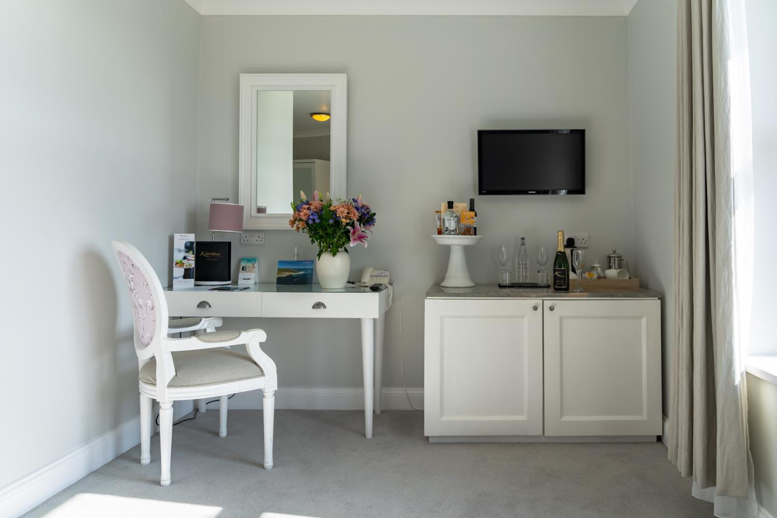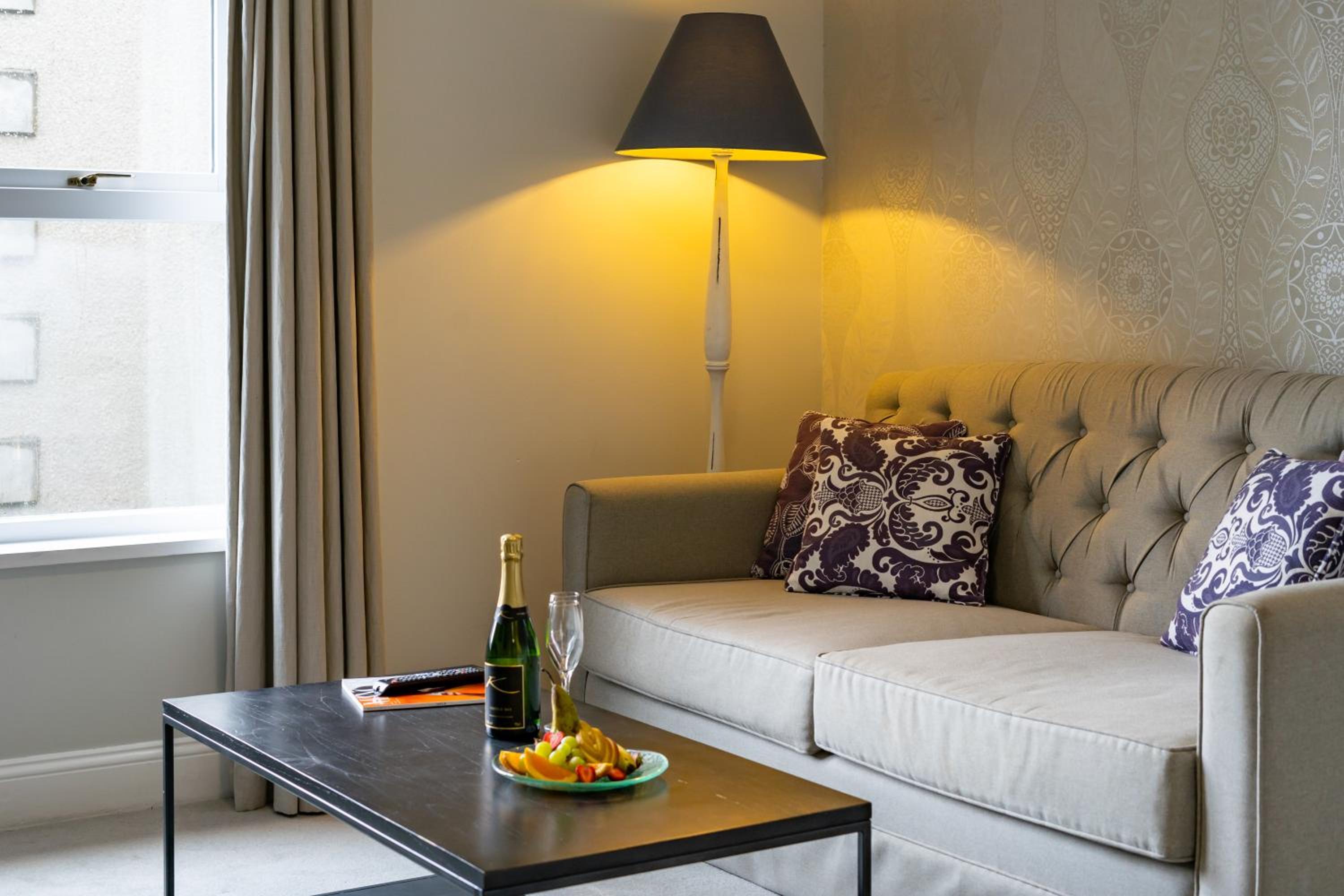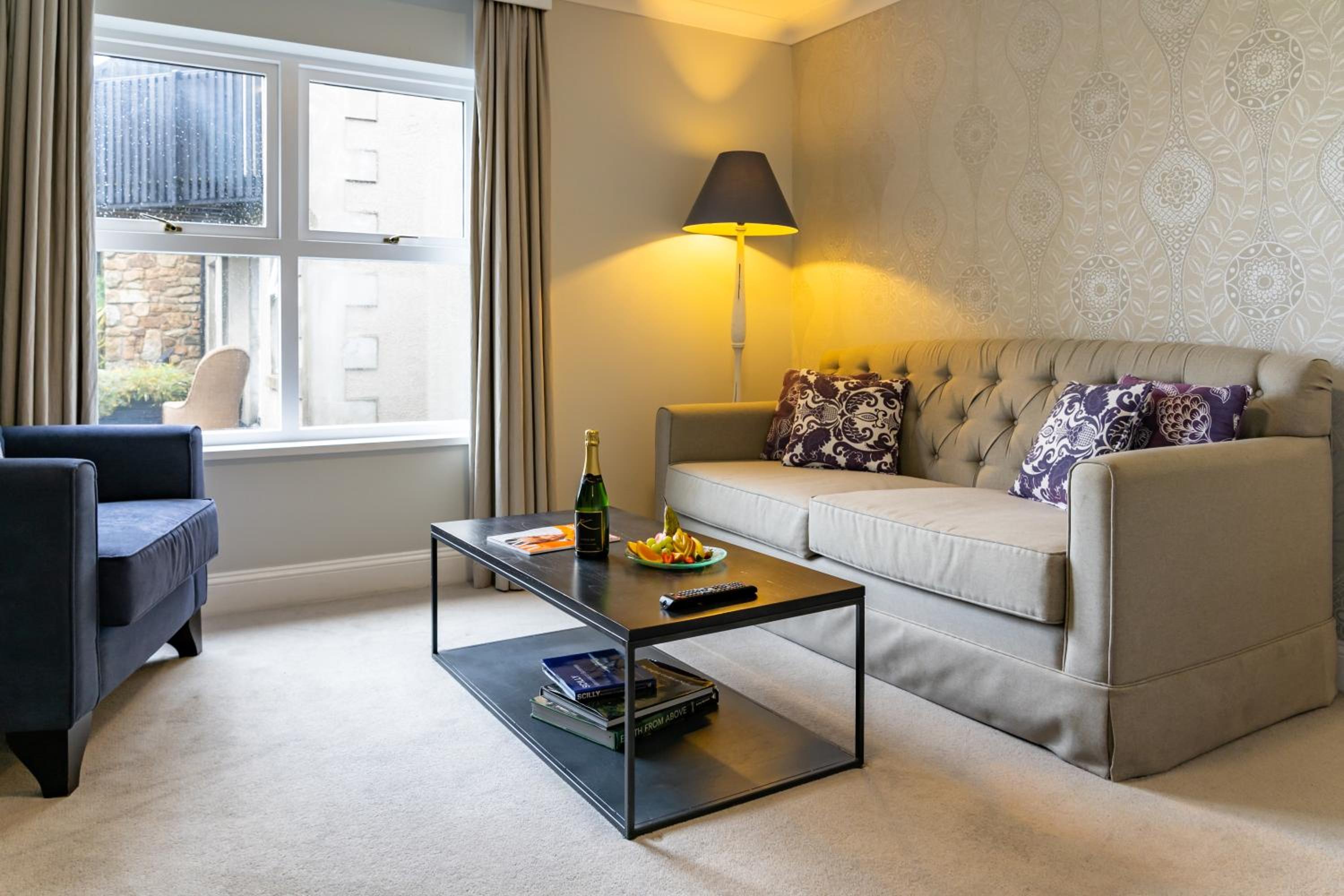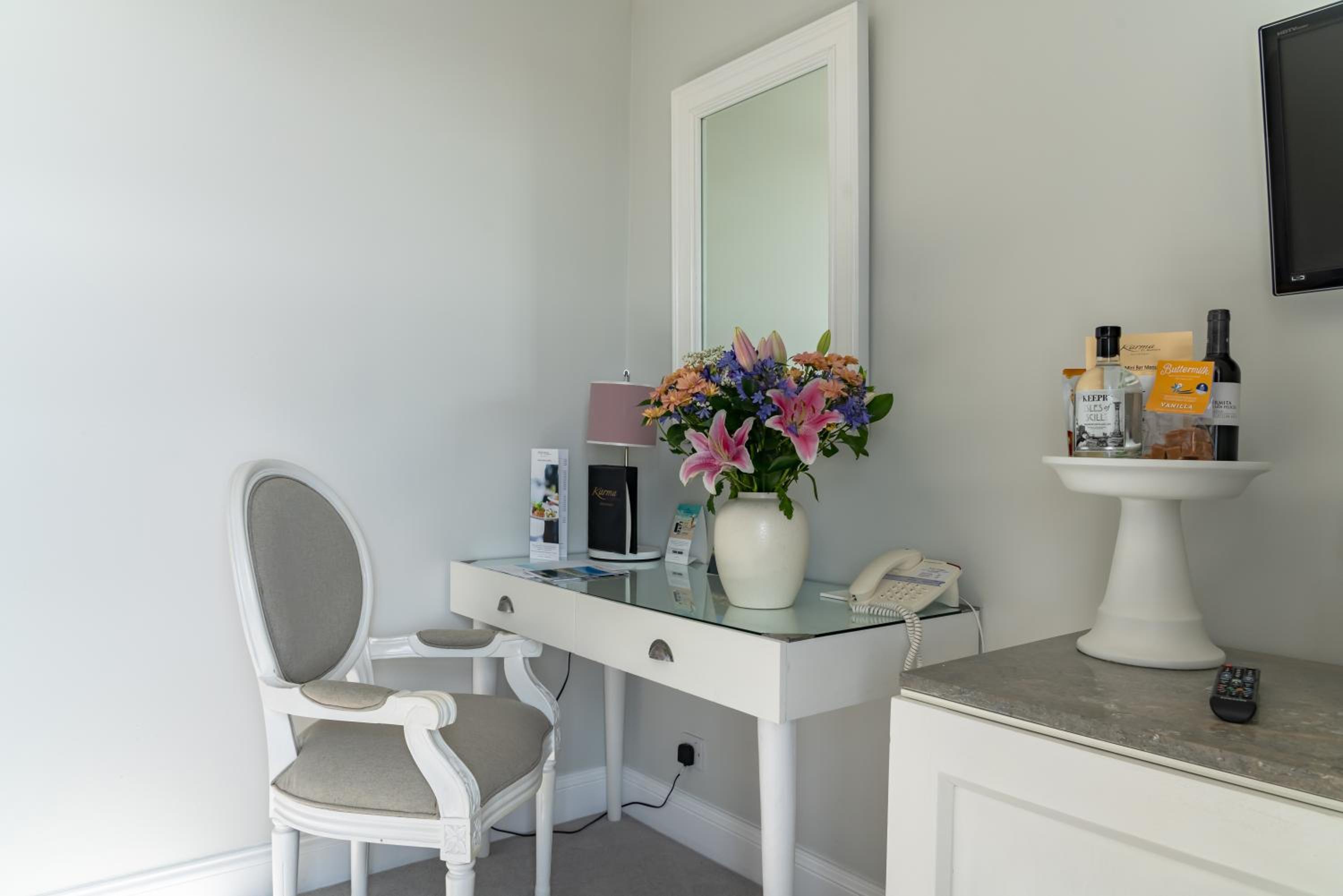 Whole place needs a refurbishment, soulless, full of dogs. Definitely not luxurious, feels run down, no longer provide robes very odd Scottish cheap toiletries, thin loo roll and our towel rail was held together with electrical tape. Pool decommissioned years ago. Massive mini bar full of sweets and booze with cake stand display that continues on side. Huge pile of rubbish in courtyard that looks like it’s been there for years.