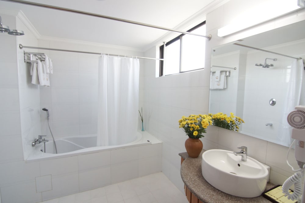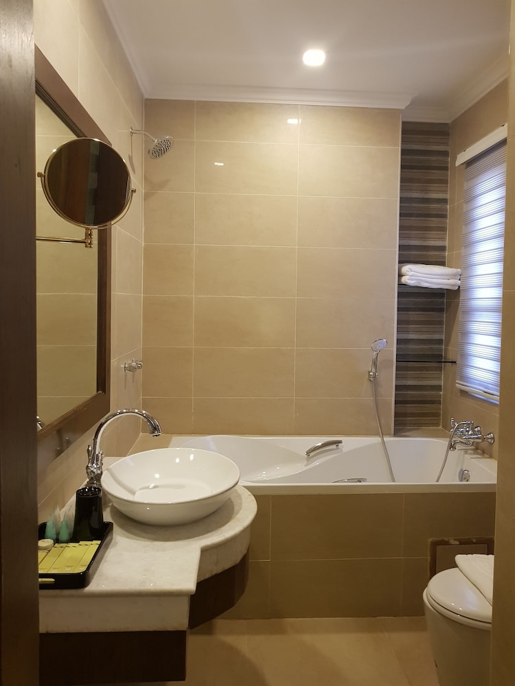 Very clean and nice high technology in the room. Rooftop pool is very easy to access and beautiful view from up there. Restaurant on 6 floors is quite a bit hot to eat in but they have fan available. Big bathroom , tub and nice standing showers. Very pleased with my stayed.