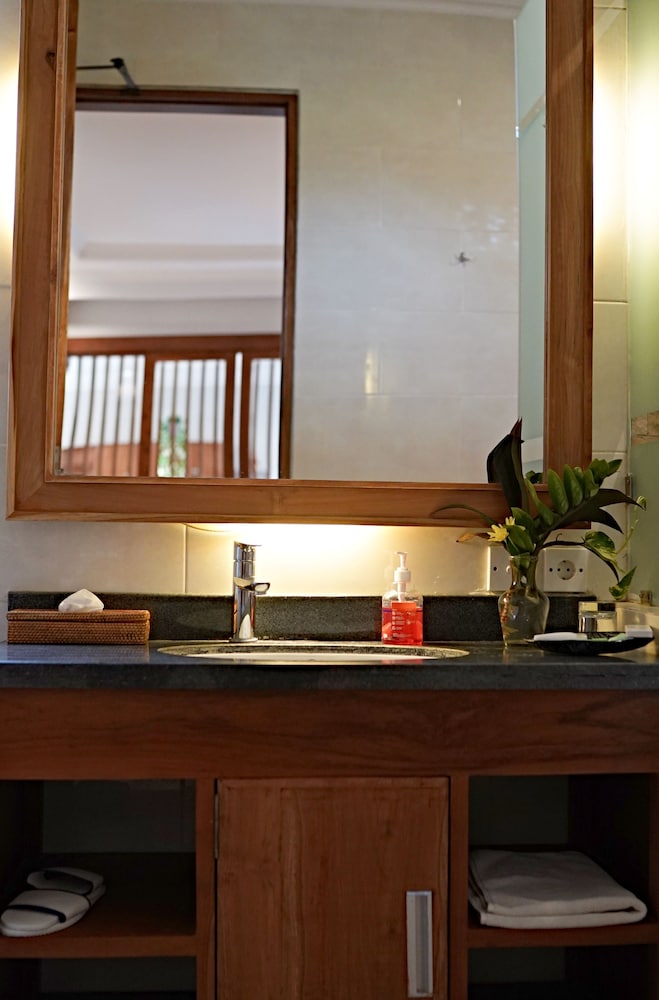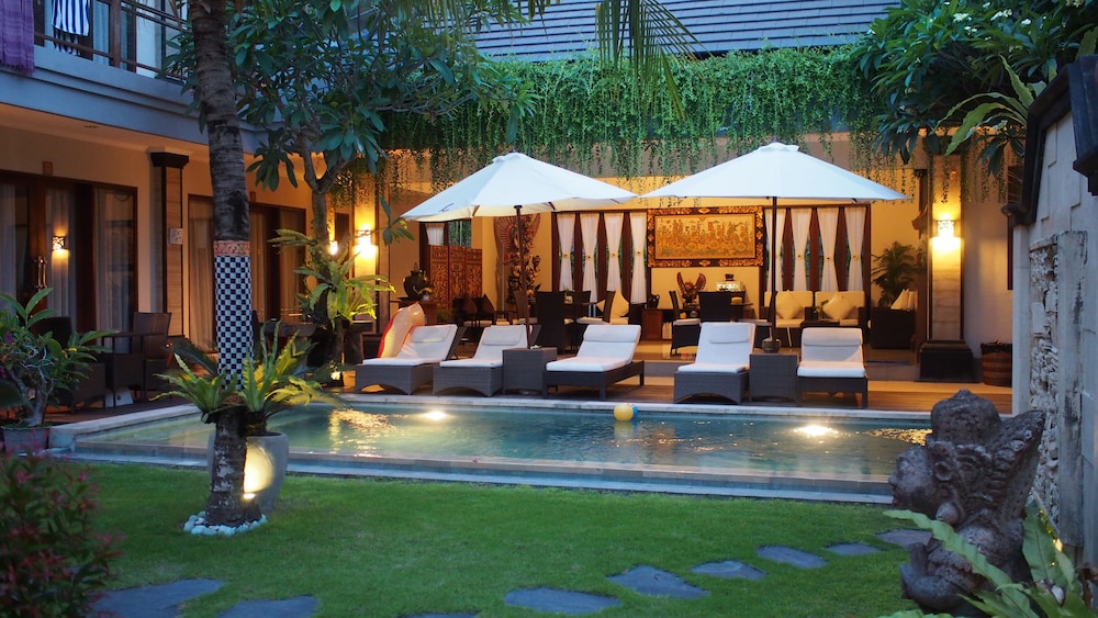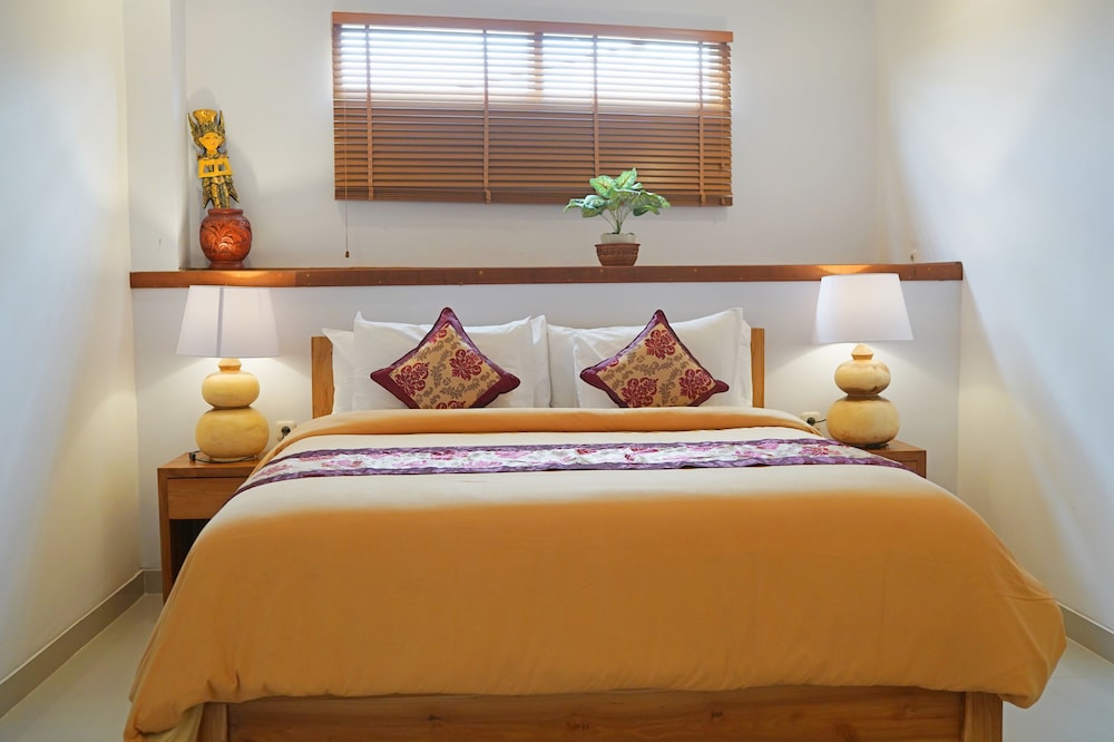 Fint litet hotell. Härlig bungalow att bo i, stor och rymlig. Omgivningen på hotellet är toppen. Poolen ligger omringad av rummen. Solstolar finns och vyn inne på hotellet är vacker. Frukosten inte toppen men för priset så gör det inget. Mycket prisvärt hotell för det man får. Borde kosta det dubbla om mina jämför många andra boenden på Bali.