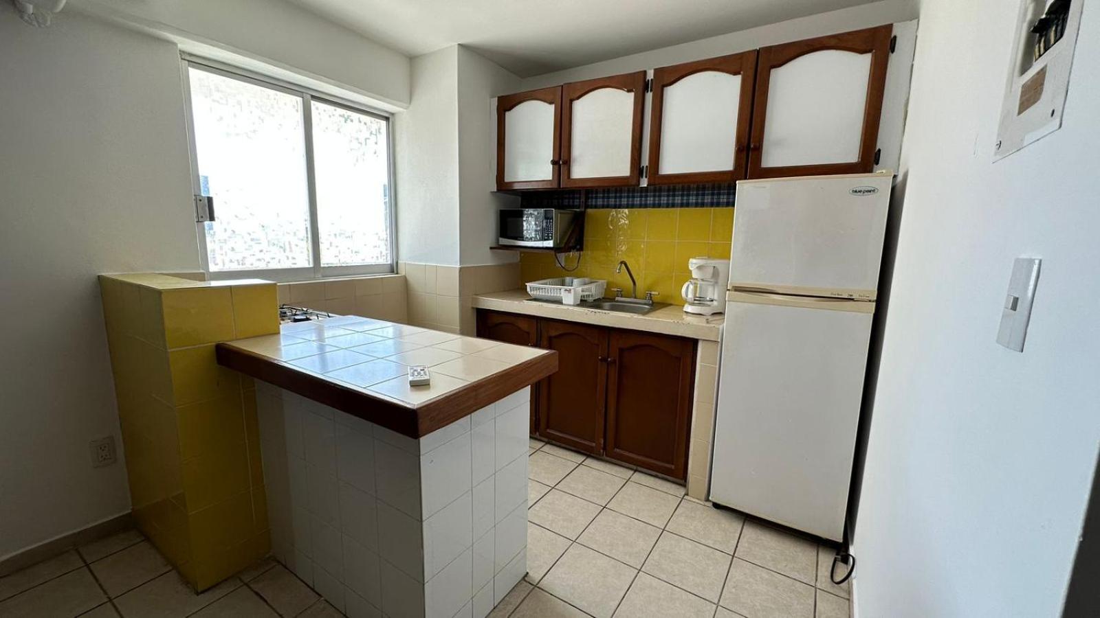 Que tiene su cocina... que es estufa, horno de microondas, refrigerador, trastes para cocinar, etc.