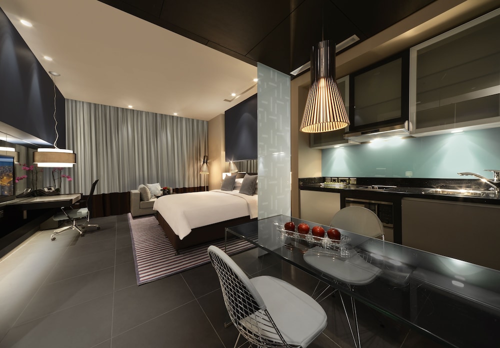 In theory, staying next to an upscale outdoor entertainment area is nice. In reality, the noise level is inescapable. You’re either facing the street, where cars are blasting music and groups of people are yelling, or you’re facing the Boulevard, where crowds are present until the wee hours of the morning. Customer service at the front desk is stingy, rude, and inflexible, especially to guests visiting us in the lobby (even our friends and family were surprised). They nickel and dime you while giving the least amount possible (one tiny bar of soap for the bathroom, one towel, etc). There was no iron in the room, the water kettle was broken, the safe didn’t work, and the washing machine leaked puddles of water. Oh, and even though we specifically asked for a non smoking room bc my son has allergies, the supposed “non smoking” room reeked of stale smoke.