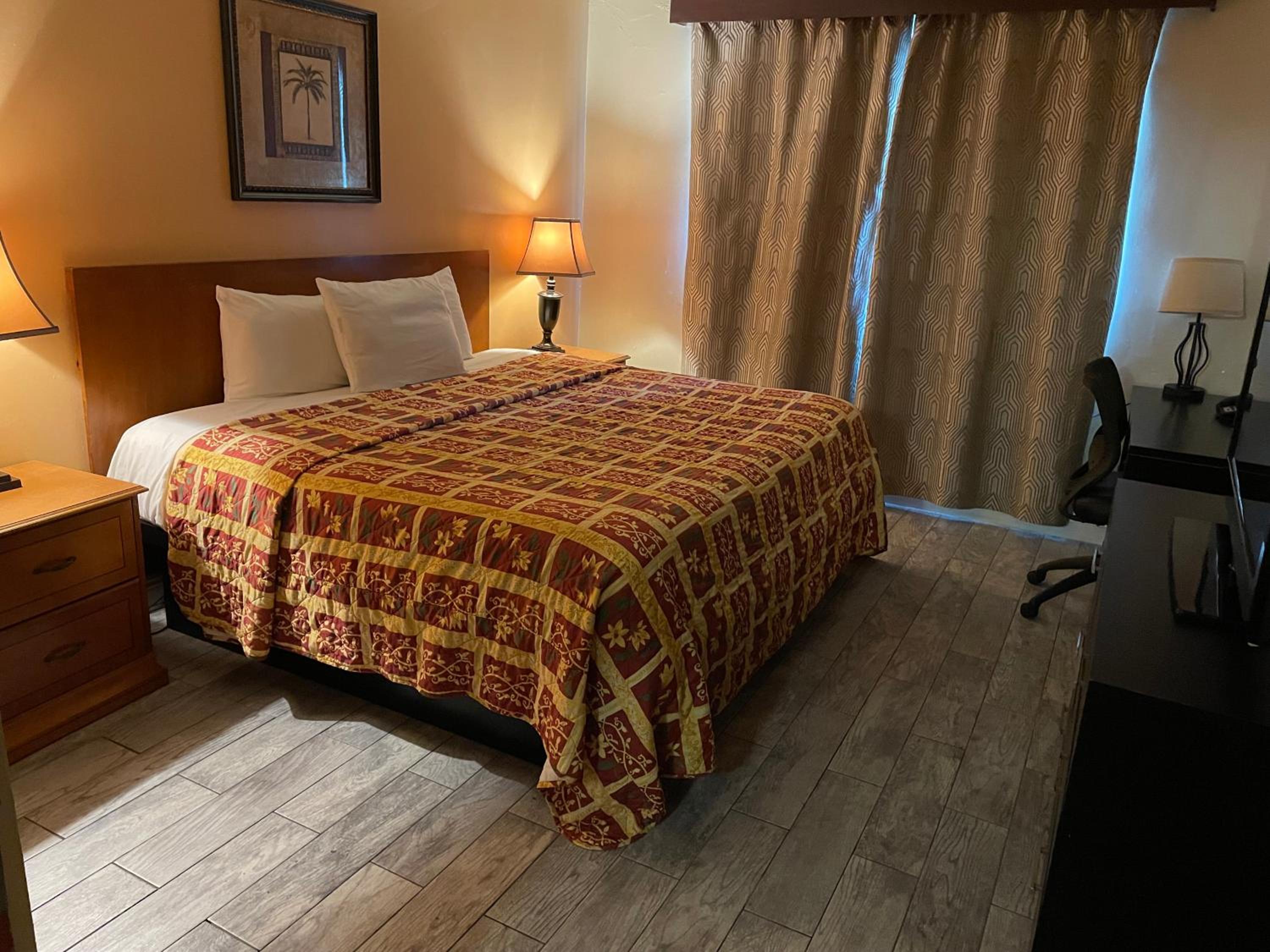 I called to extend my stay an additional day, they were very accommodating. Room is clean, but pretty worn and dated. Close to freeways, location and prices are good. Nice friendly staff. Refrigerator in room.