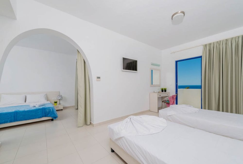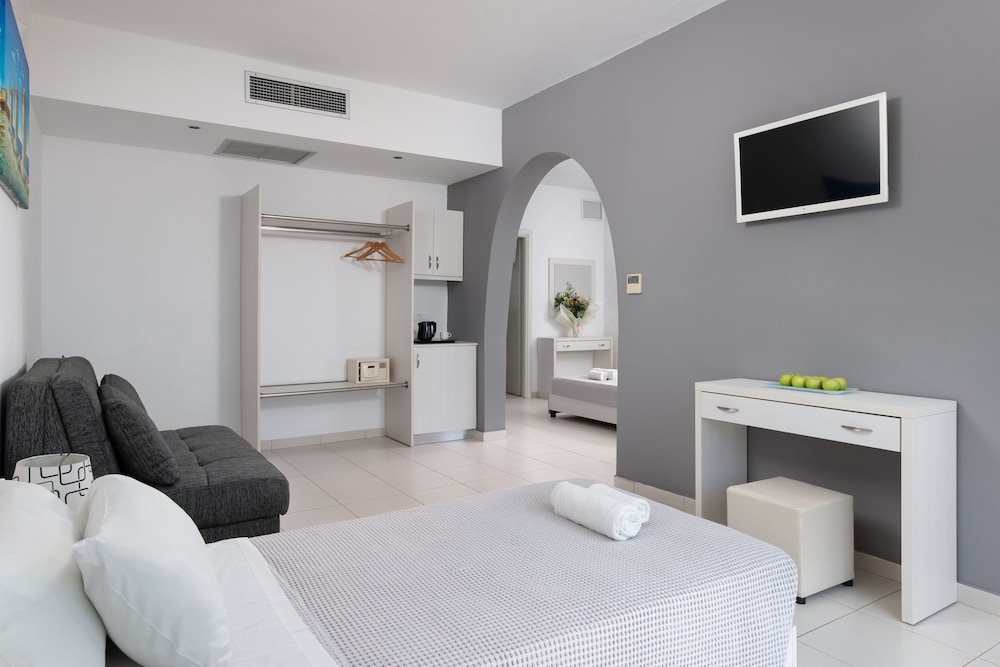 We stayed as a family of four and we loved it! The staff, especially our receptionist George and bar man Jerry were just amazing! The hotel has family rooms with private pools and we used it daily! So wonderful! The area is calm and you can walk to Pefkos for meals and more action. The beaches were close enough to walk but we stayed more at the pool. The breakfast was lovely!