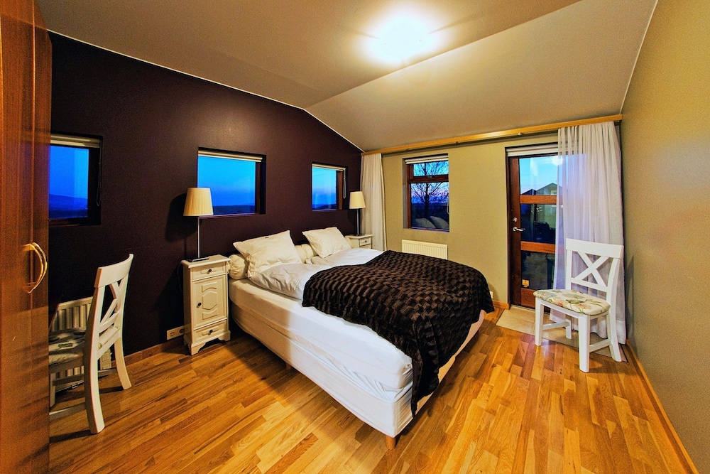 Lovely little place 6km off the main road down a part gravel road. Really friendly and accommodating staff. Looks fairly basic outside as most Iceland places do but homely and we’ll designed inside. Fairly no-frills rooms but comfortable beds and clean. We enjoyed the hot tub, ate a lovely lamb stew and chocolate cake for dinner and the location was perfect to avoid us having to go all the way back to Reykjavík after driving to Vik and we were then onto the golden circle within about 20 minutes the next morning.