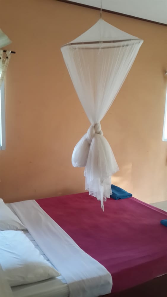 We stayed here for 7 nights and you get what you pay for. Its a nice and good location , really off from the city but they will offer you a moped for rent when you get there and that will really take you to better spots on the island. We did not spend that much time in the bungalow but the standard is perfect for backpacking and they offer a good breakfast.