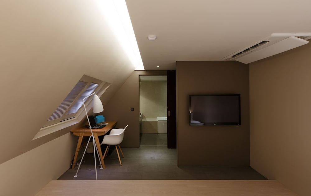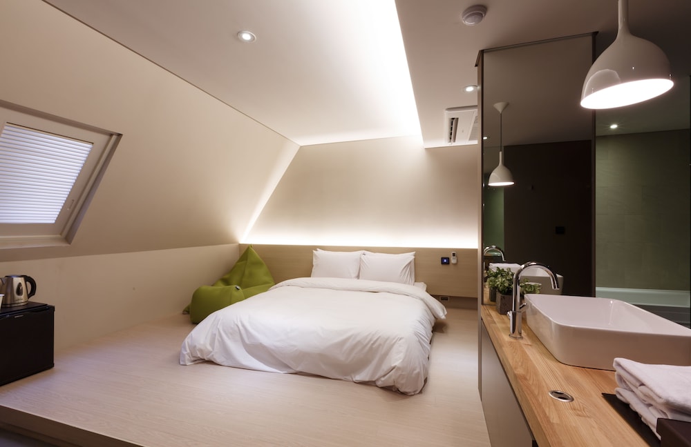 This hotel room has all the things you can find in a four stars hotel. The warm toilet seat cover set at perfect temperature. Great quality of toiletries. Very very clean room. Our laundry & other requests were attended to by hotel staff promptly. The music & fragrance blanketed the very subdued tiny lobby, sitting area are dressed with latest fashion magazines. Free wifi and usage of room laptop. Refrigerator pack with free bottles of water and soft drink. Subway within 5 minutes walk. Plenty of food around the hotel and there is a HomePlus Express nearby too. Very easy commute to & from airport, bus stop for Airport Limousine (Coach) just around the corners of the hotel, both within 1- 2 minutes walk. (Different pickup and drop off point - Nambu Bus Terminal). We had the twin room, spacious with attic feel, appreciate the designer sensible touch & adequate lighting. This stay was perfect for me and my son.