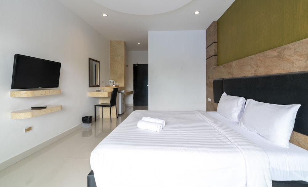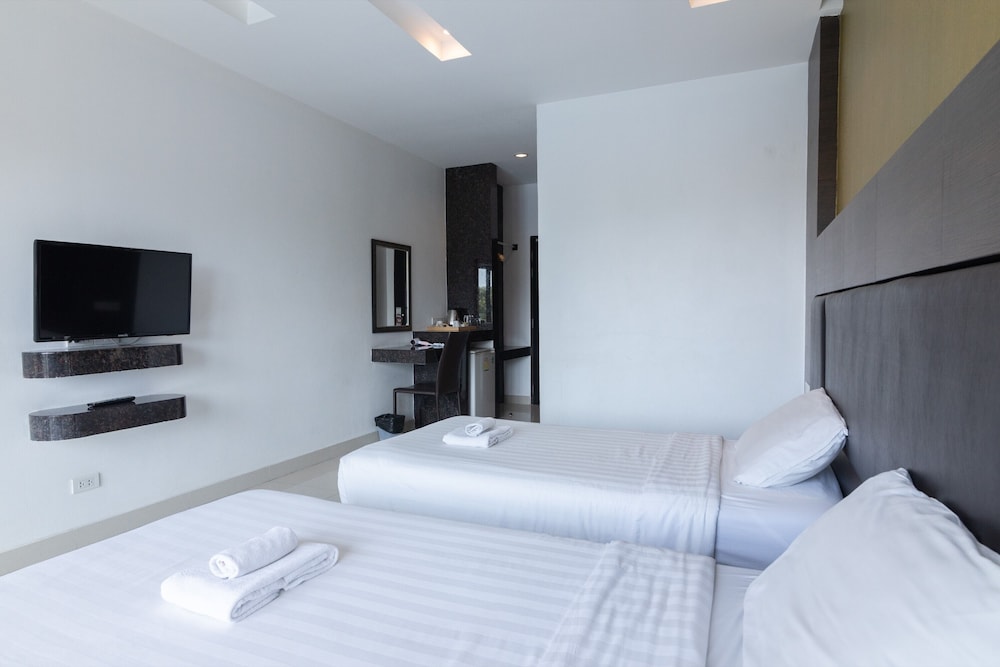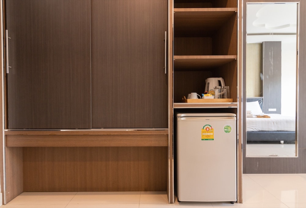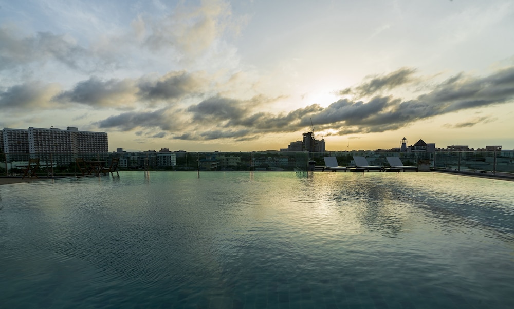 A very nice hotel located near the Jomtien beach. The rooms were clean and looked almost new, just like the rest of the hotel. Cleaning daily. No wardrobe but a hanging bar there is. Nice swimming pool at the roof, about 35 sqm. Breakfast was ok and there were three types to choose from. Also special thanks to the staff and nice girl(s) at the reception!